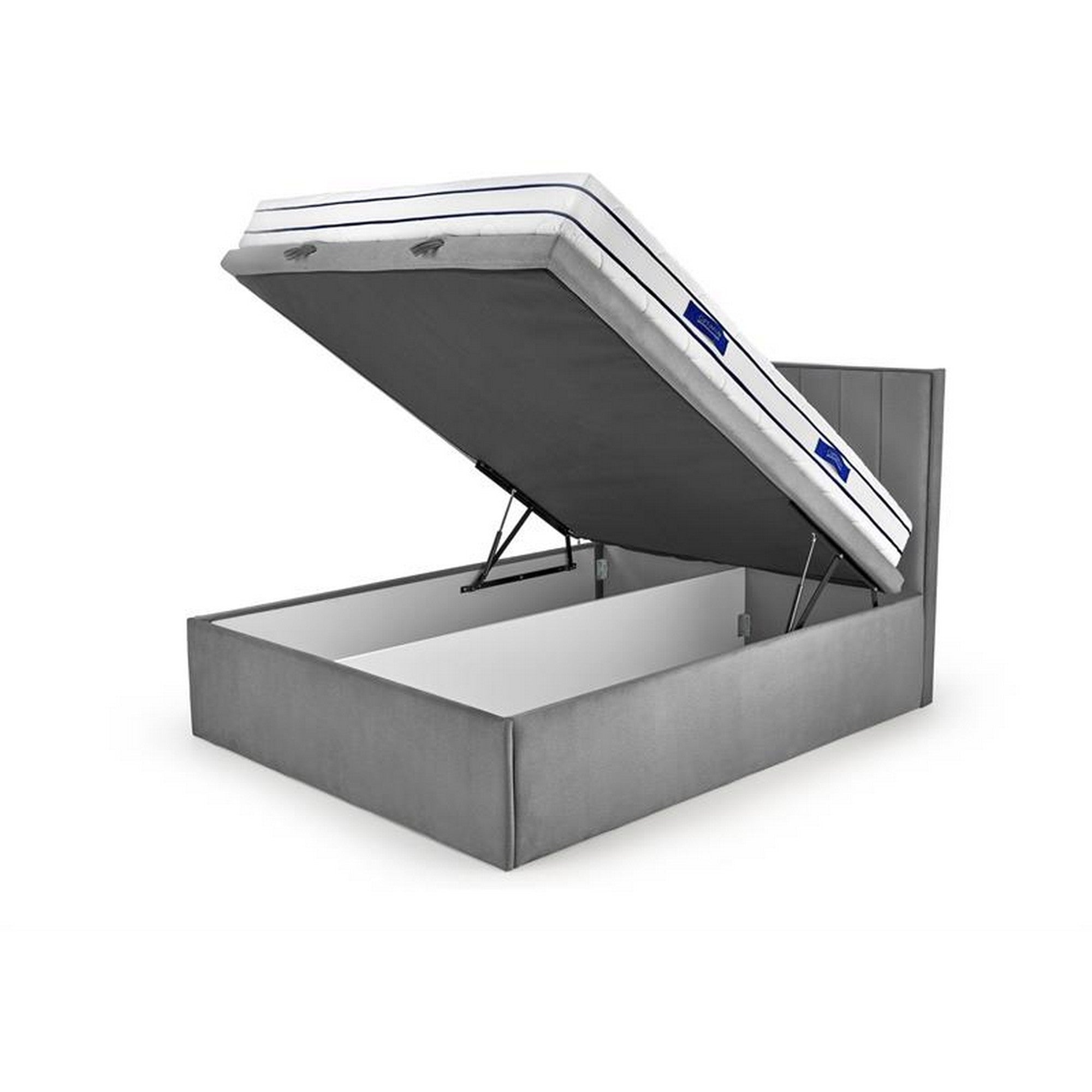 Pat 160x200 ASENTO, galben mustar, stofa catifelata - Element 8, cu spatiu depozitare, 162x210x121 cm