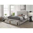 Pat 160x200 MARISOL, bej, stofa catifelata, cu sertare, 167x216x118 cm