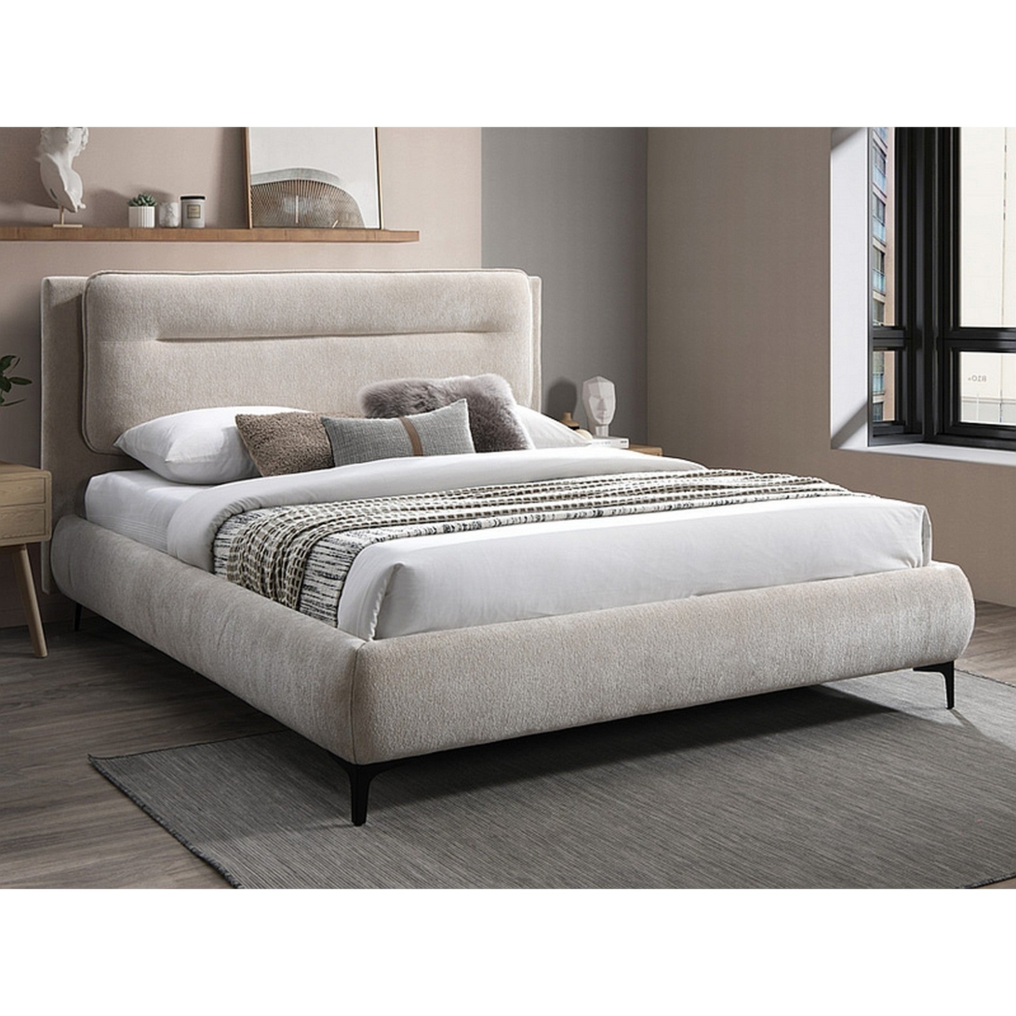 Pat 160x200 NIKOZJA, bej, stofa - Raven 28/metal, 179x217x114 cm