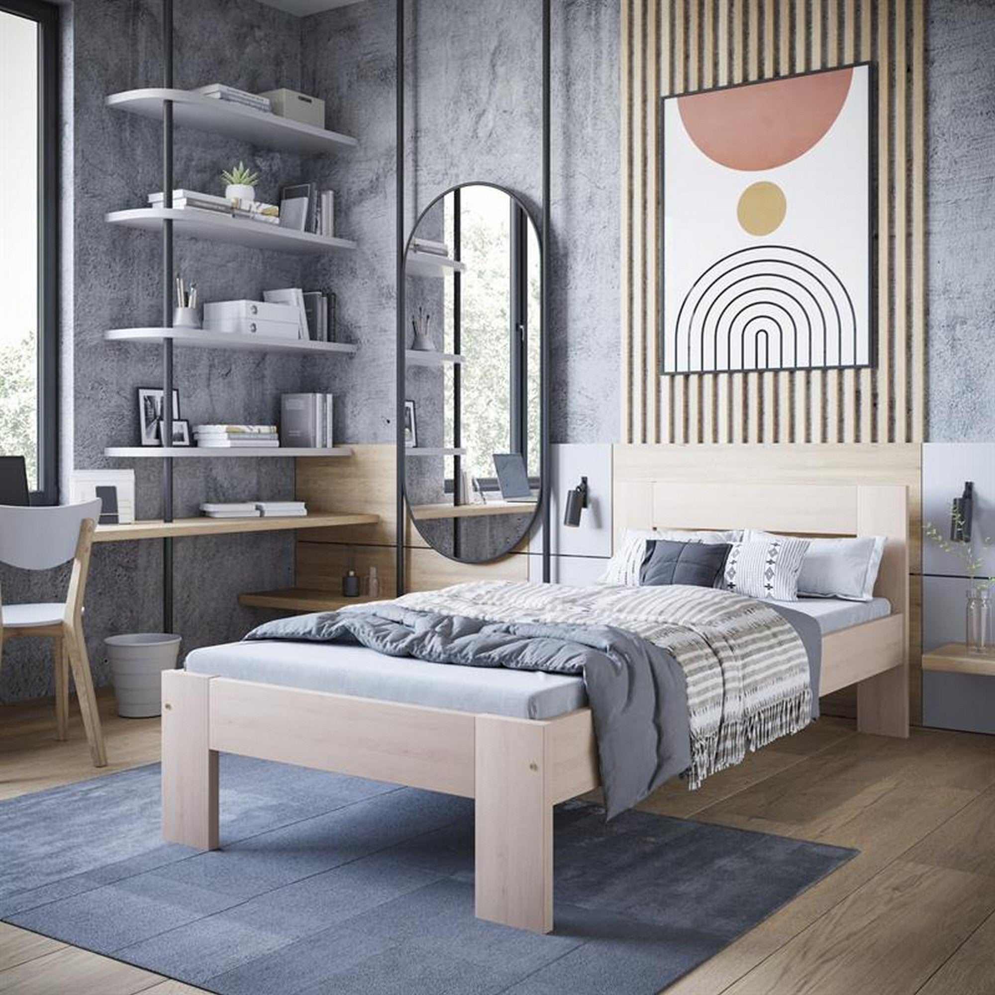 Pat 90x200 MATILDA, stejar, lemn de fag, 98x205x87 cm