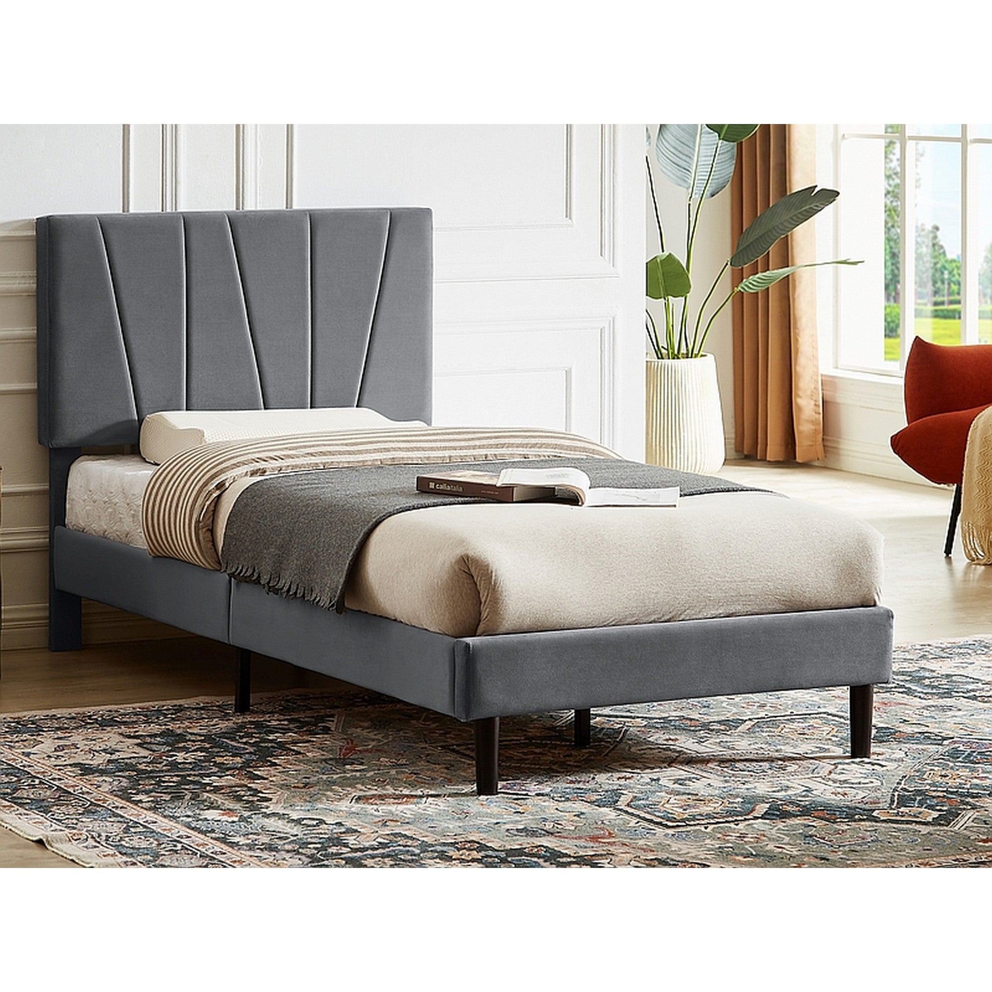 PAT 90X200 SAVANA, GRI, STOFA CATIFELATA/LEMN, 101X214X102 CM