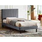 Pat 90x200 SAVANA, gri, stofa catifelata/lemn, 101x214x102 cm