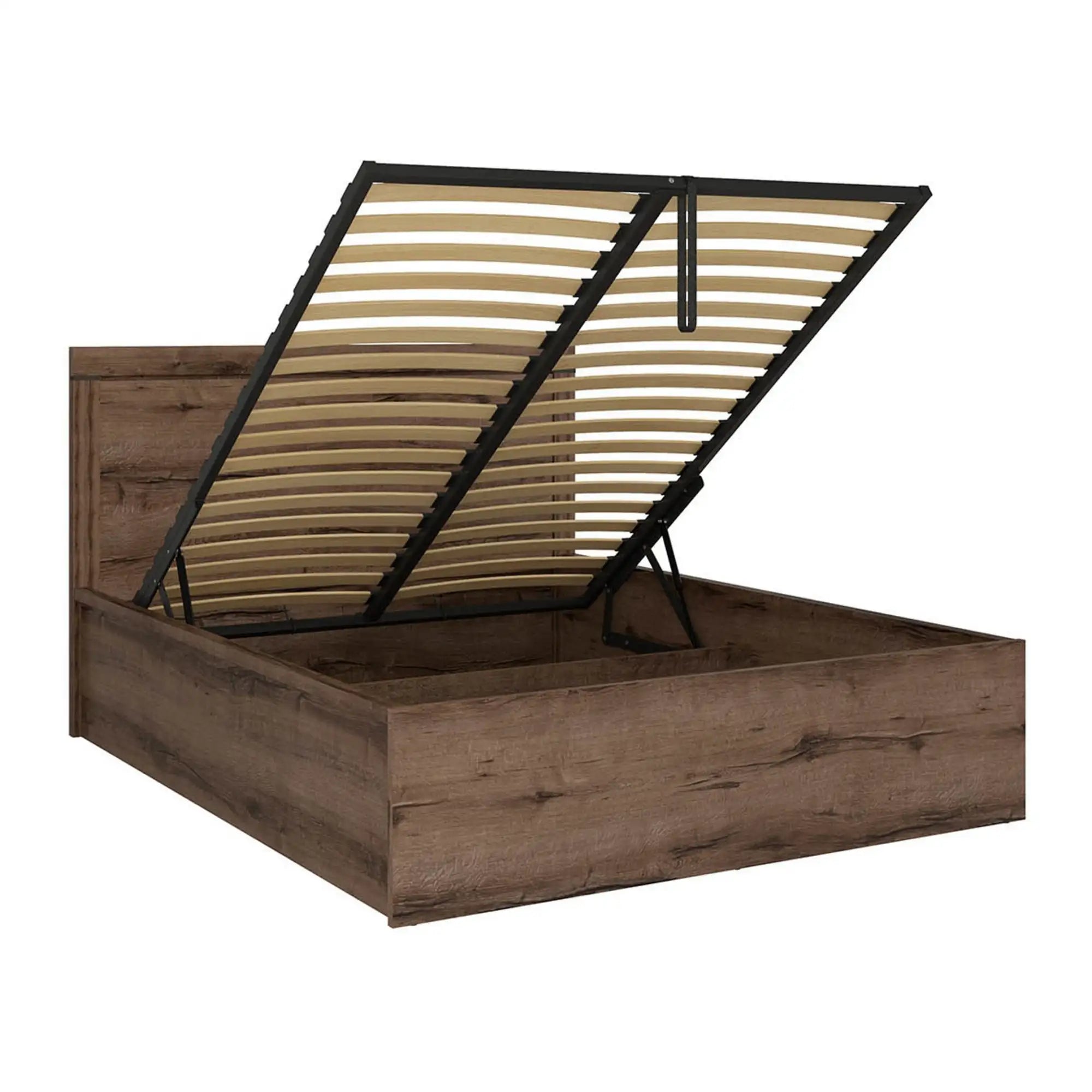 Pat BALIN 140x200, stejar, PAL, cu somiera si lada depozitare