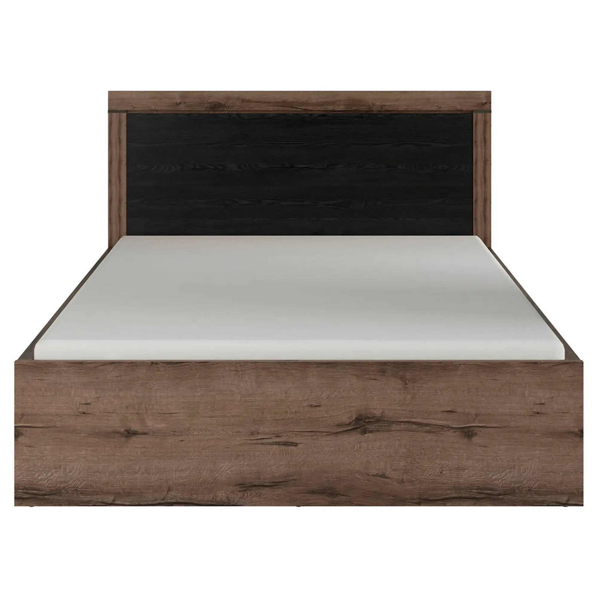 PAT BALIN 160X200, STEJAR/NEGRU, PAL, CU SOMIERA SI LADA DEPOZITARE