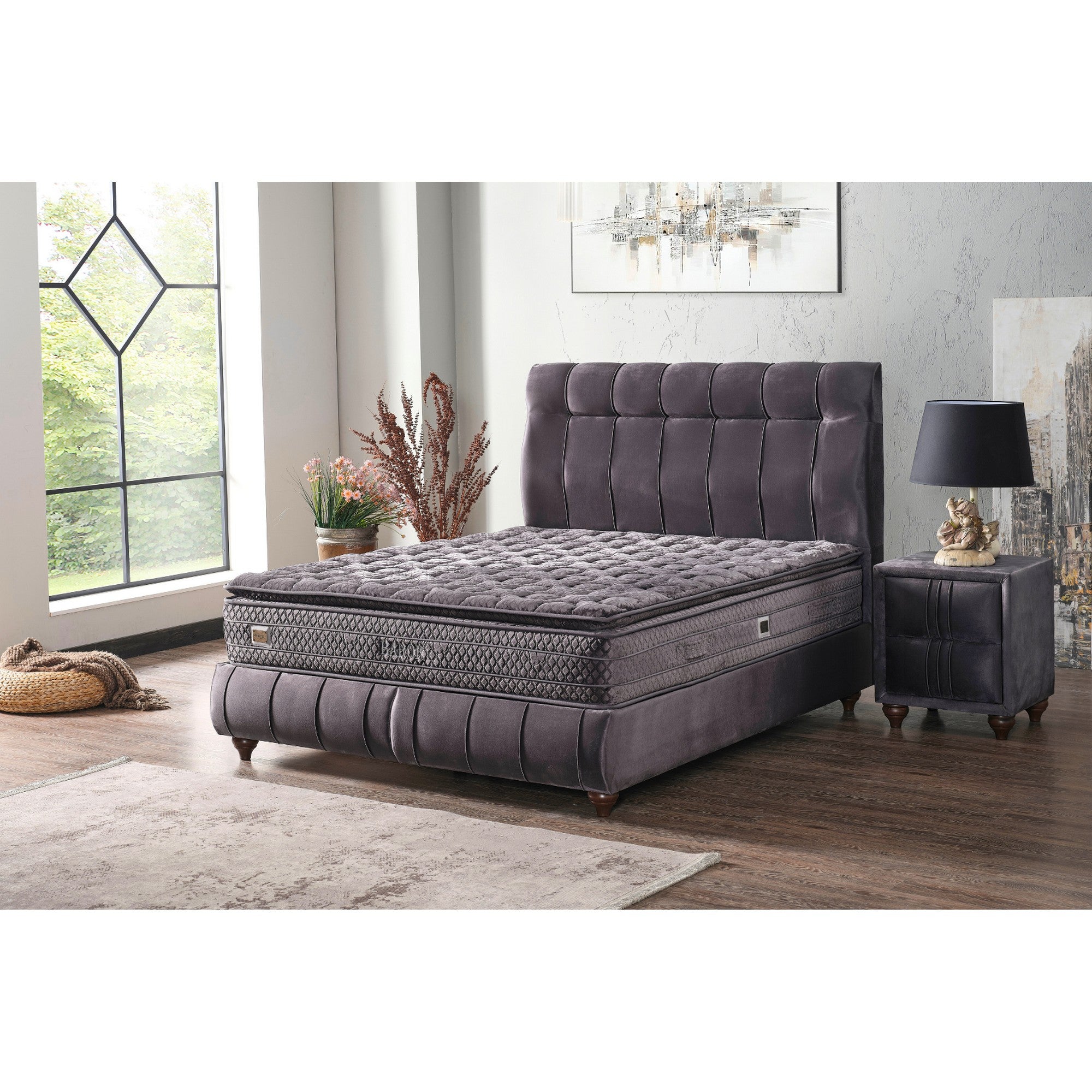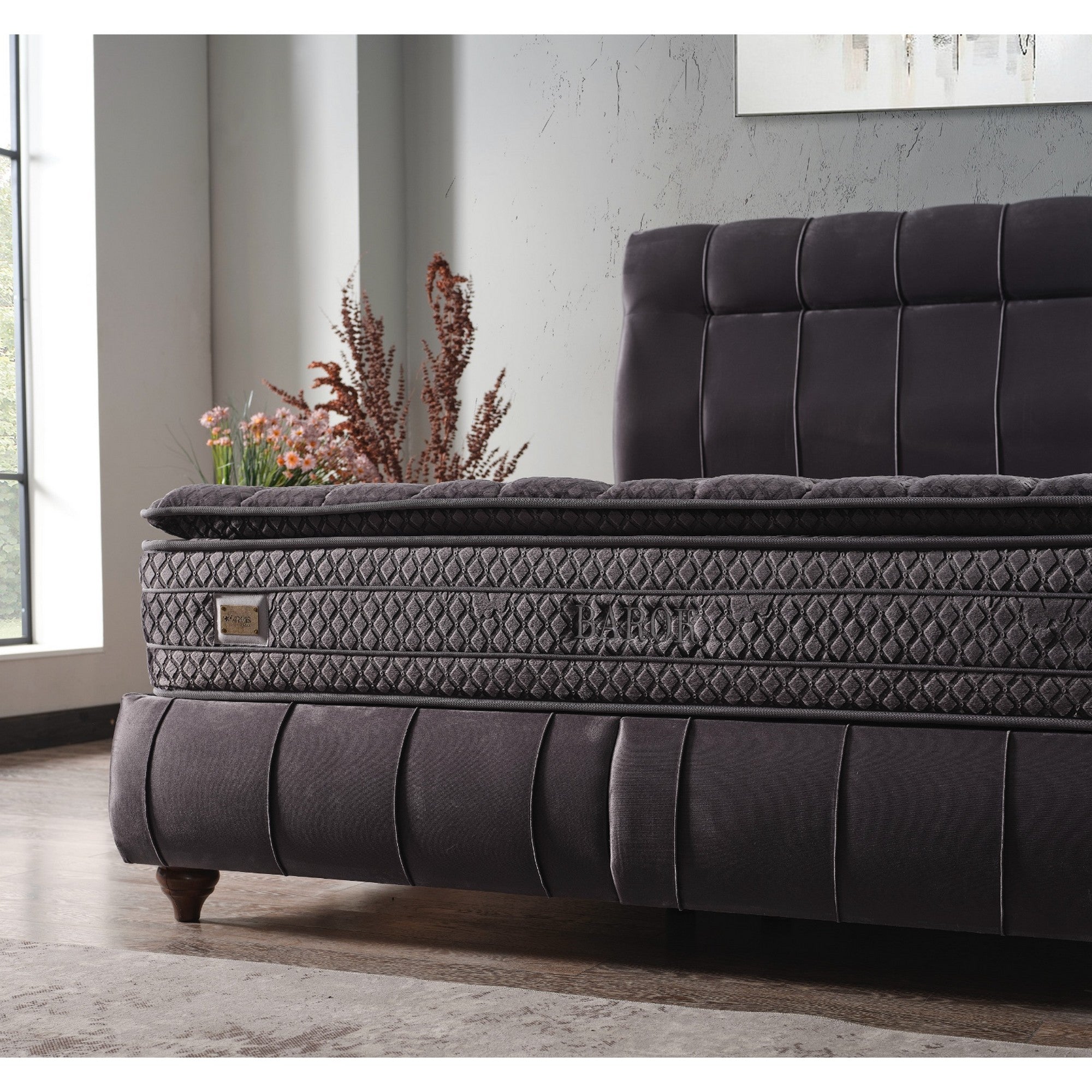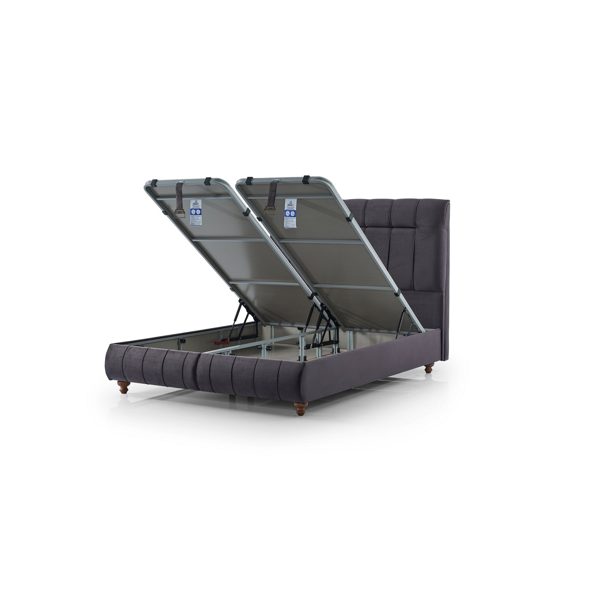 Pat BAROK 160x200, stofa catifelata gri inchis - Setra 811, cu somiera si spatiu depozitare
