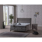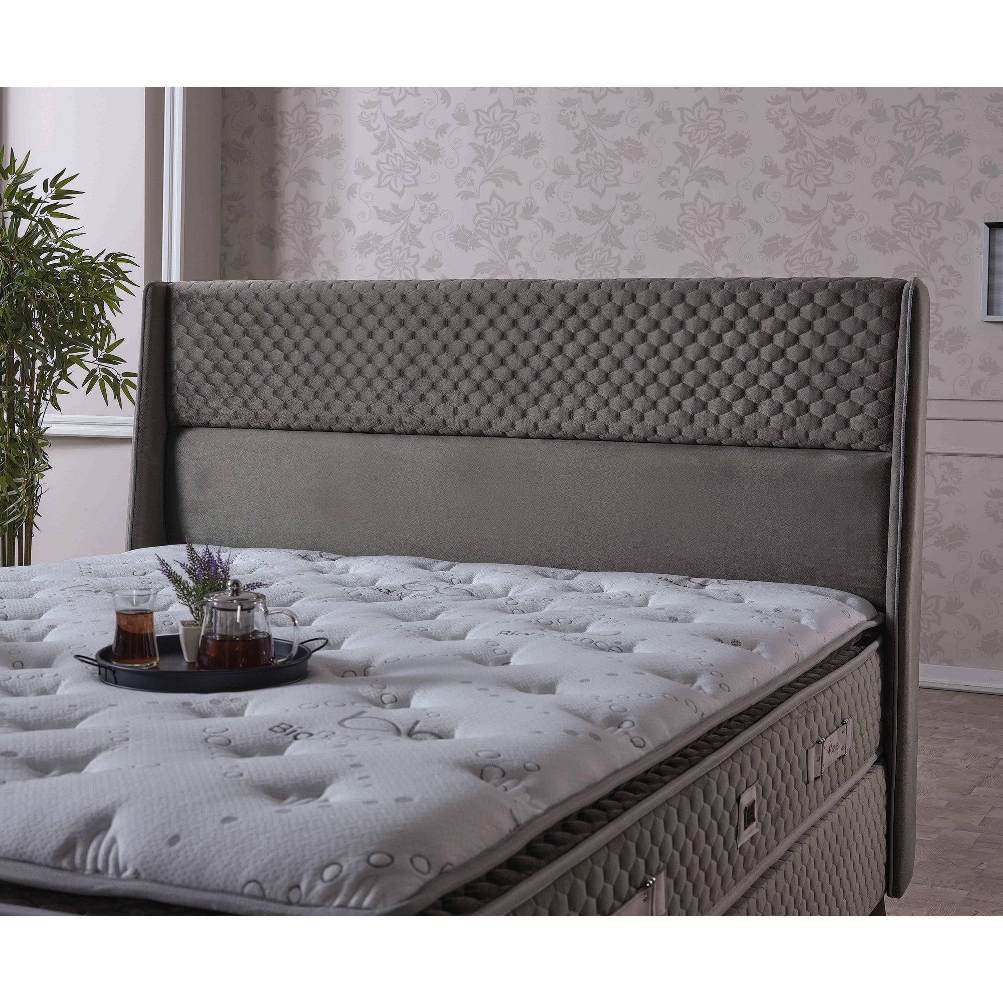 PAT BIO BALANCE 160X200, STOFA CATIFELATA GRI - ZEN 1188, CU SOMIERA SI SPATIU DEPOZITARE