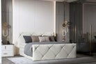 Pat boxspring MOSSA 140x200, personalizabil, cu saltele, topper si lada pentru depozitare