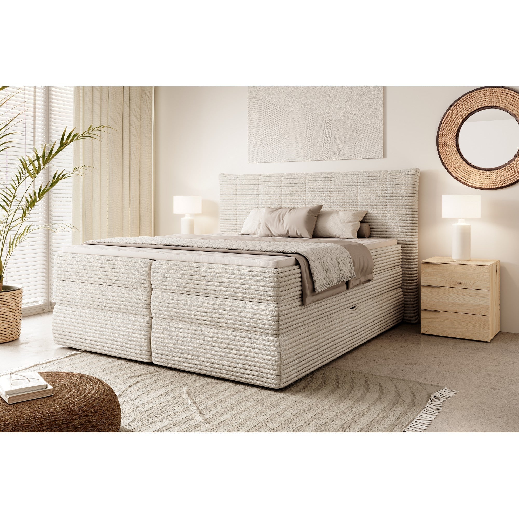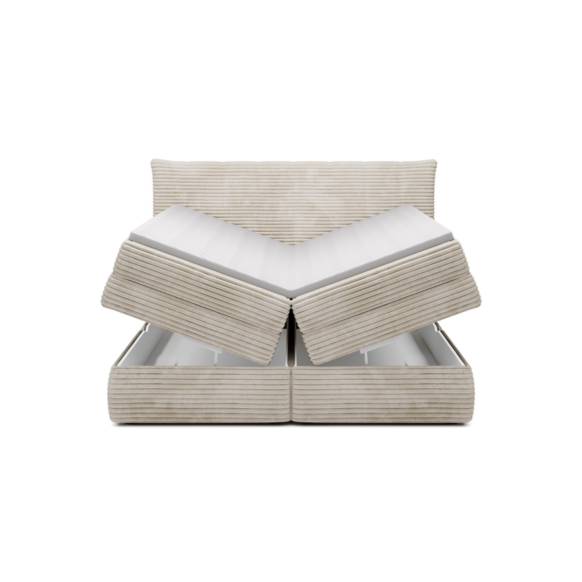 Pat boxspring AMBER 160x200, personalizabil, cu spatiu depozitare, saltele si topper