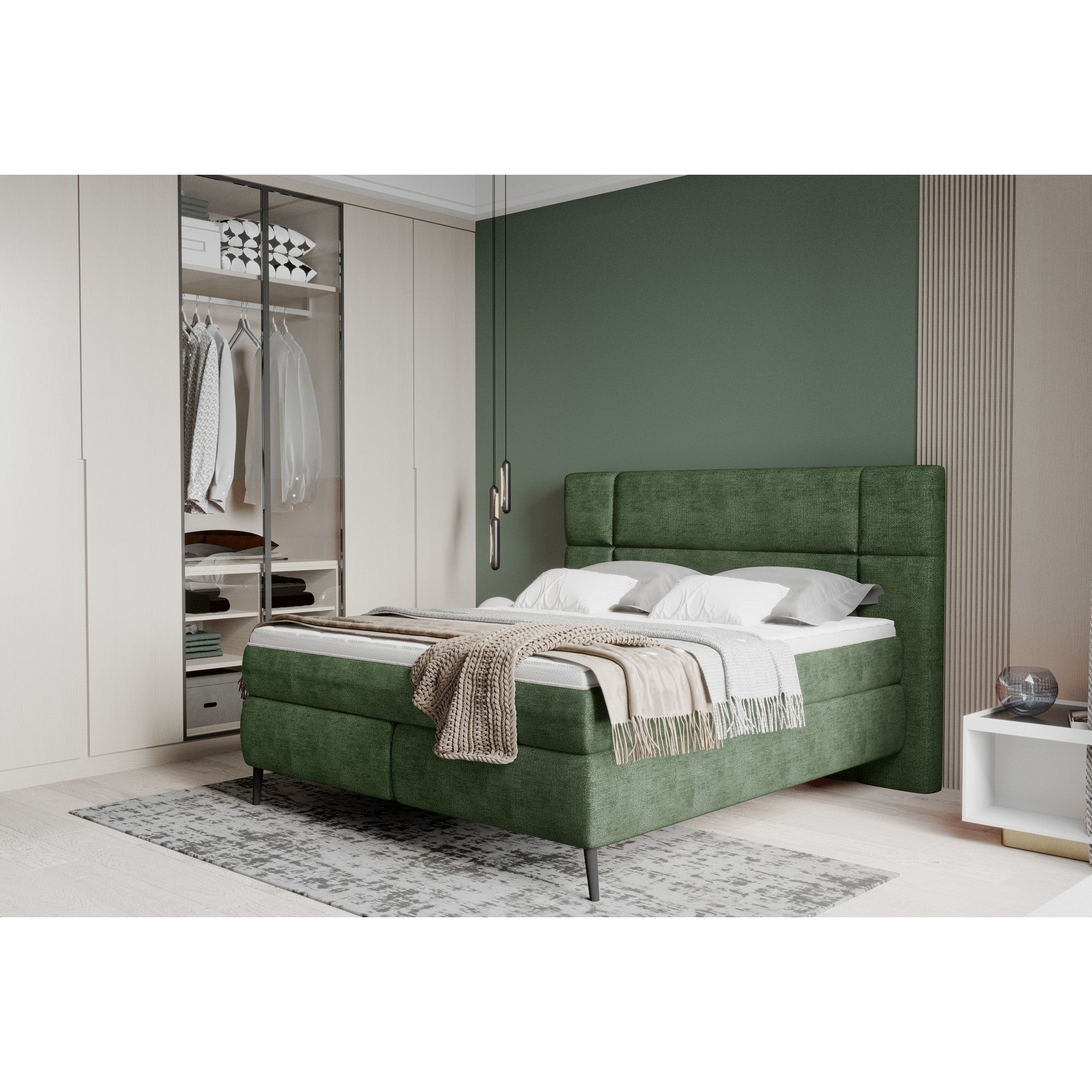 Pat boxspring LUCIO 140, personalizabil, cu saltele si topper 5 cm
