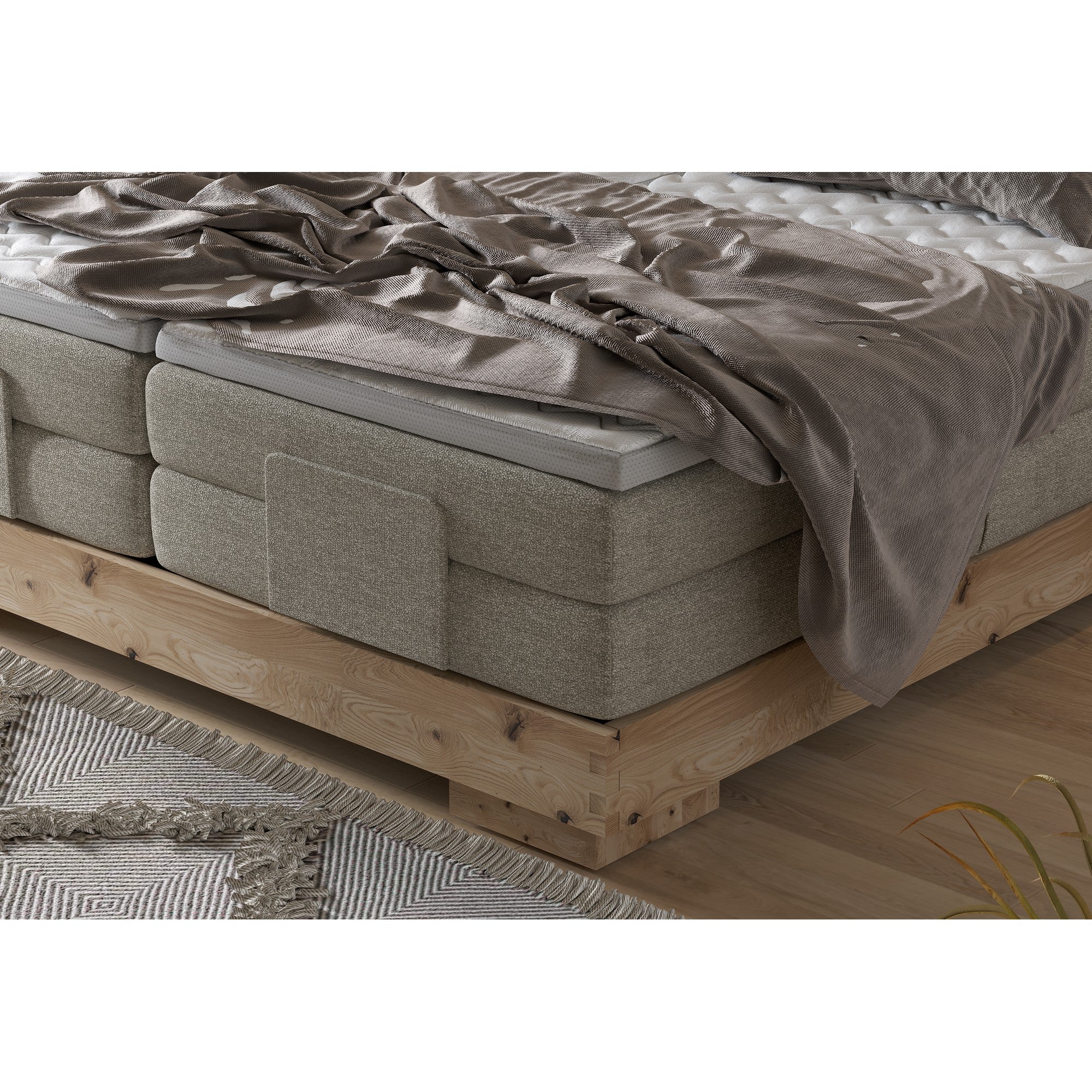 Pat boxspring VALSEN 160, personalizabil, din lemn masiv cu mecanism electric si doua saltele Pocket + topper