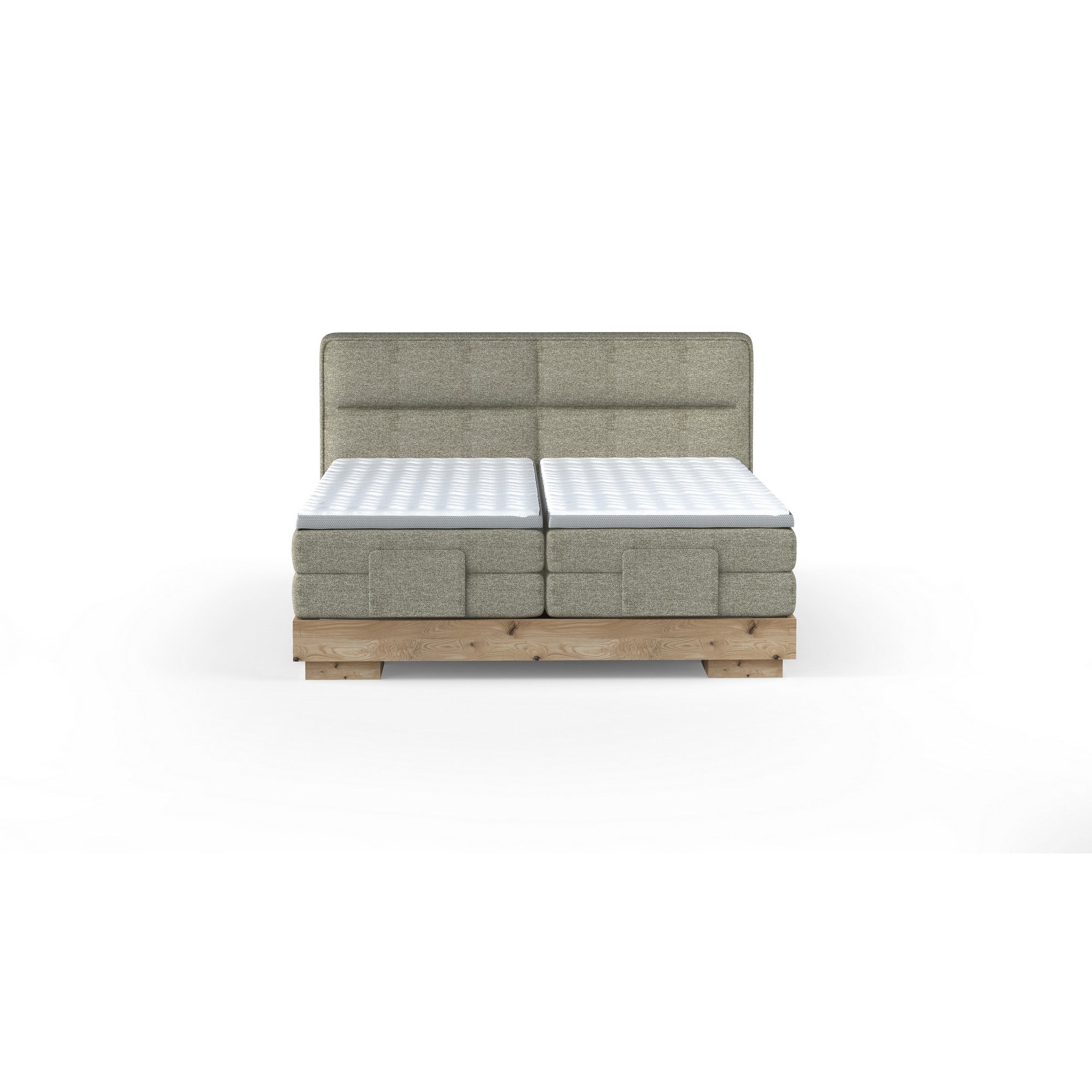 Pat boxspring VALSEN 180, personalizabil, din lemn masiv cu mecanism electric si doua saltele Pocket + topper
