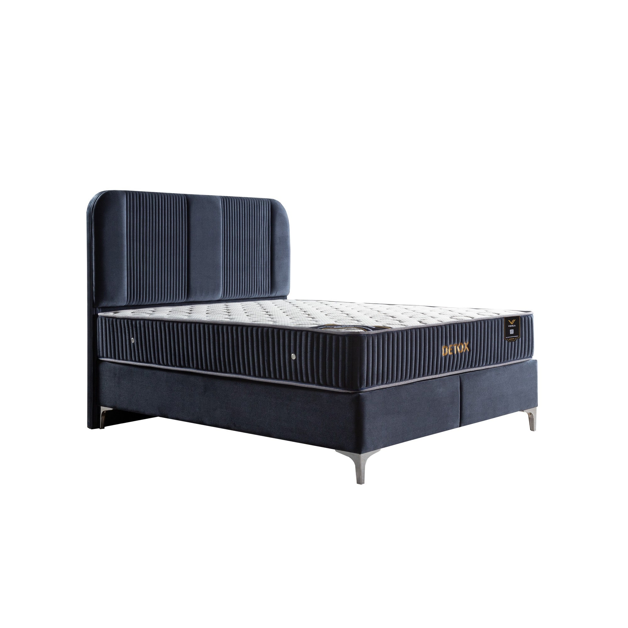 Pat DETOX 160x200, stofa catifelata albastru inchis - Luna 19, cu somiera si spatiu depozitare