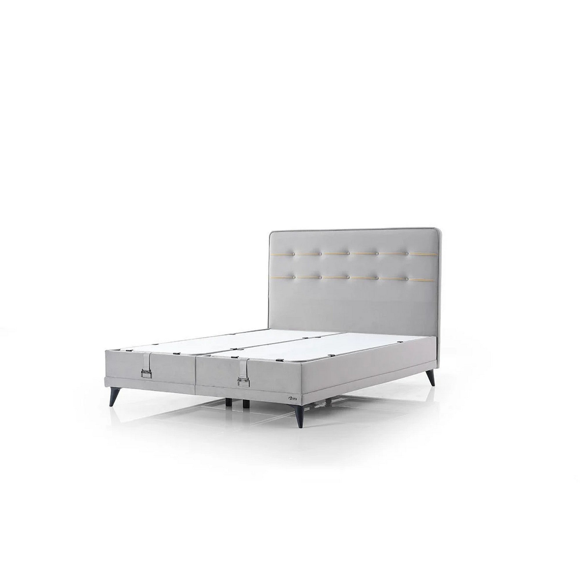 Pat FLEXFIT 160x200, stofa catifelata gri deschis - Evo 1055, cu somiera si spatiu depozitare