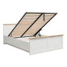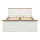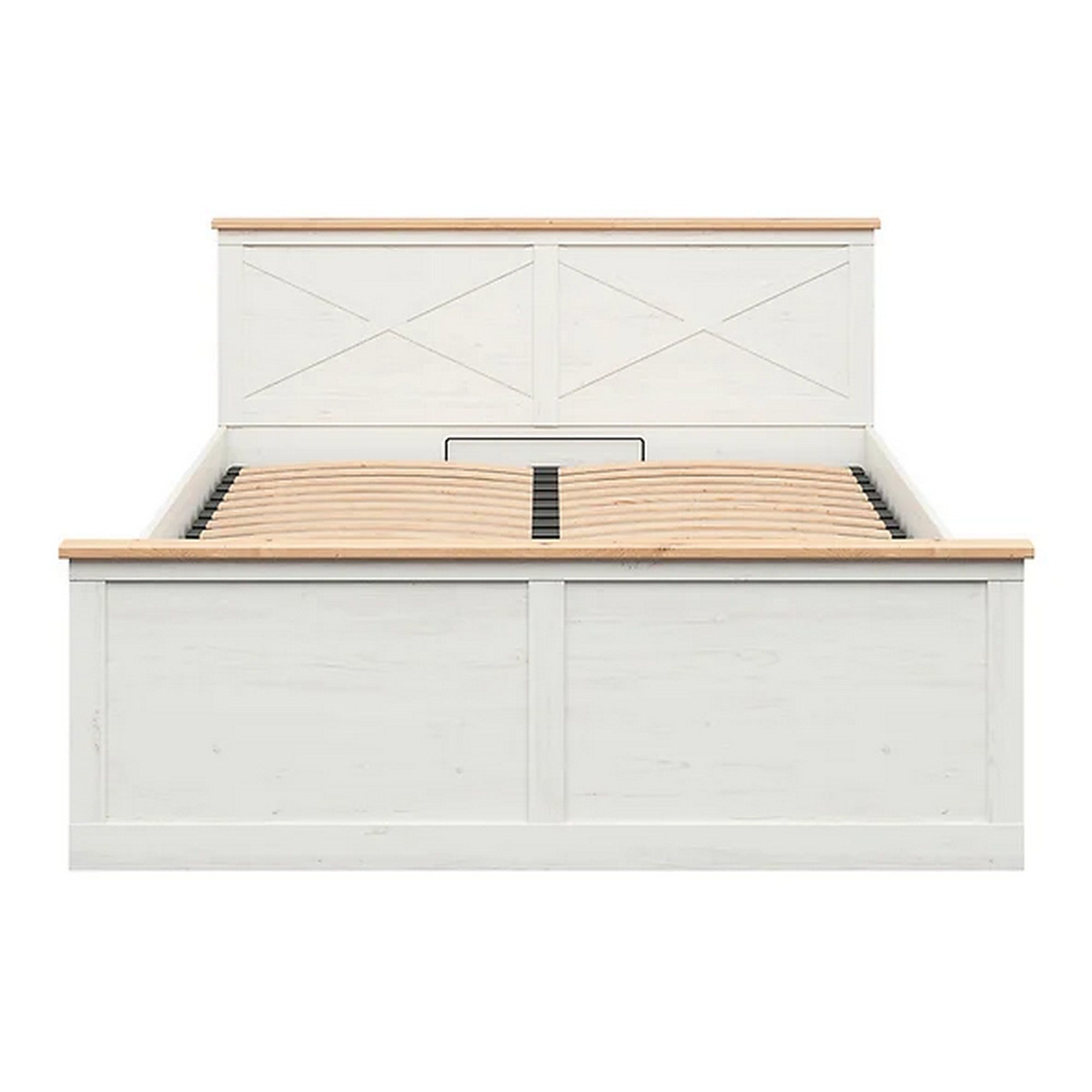 Pat FRIJA, alb pin andersen/stejar artizanal, cu somiera si lada de depozitare, 168X208X95 cm