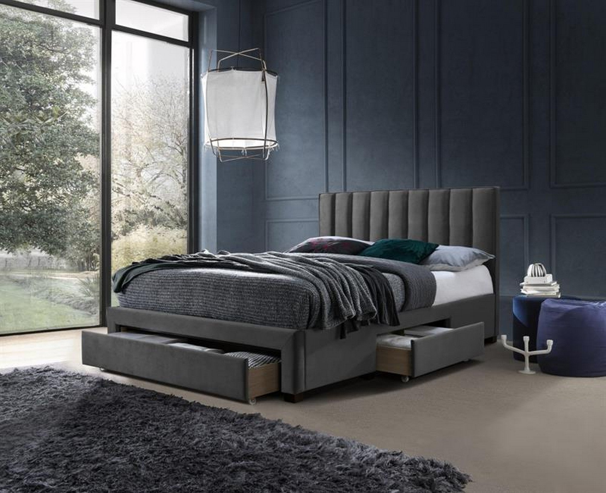 PAT GRACE 140X200, STOFA CATIFELATA GRI, CU SOMIERA SI SPATIU DEPOZITARE, 145X214X111 CM
