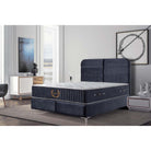 Pat LONDON 160x200, stofa catifelata albastru inchis - Luna 19, cu somiera si spatiu depozitare