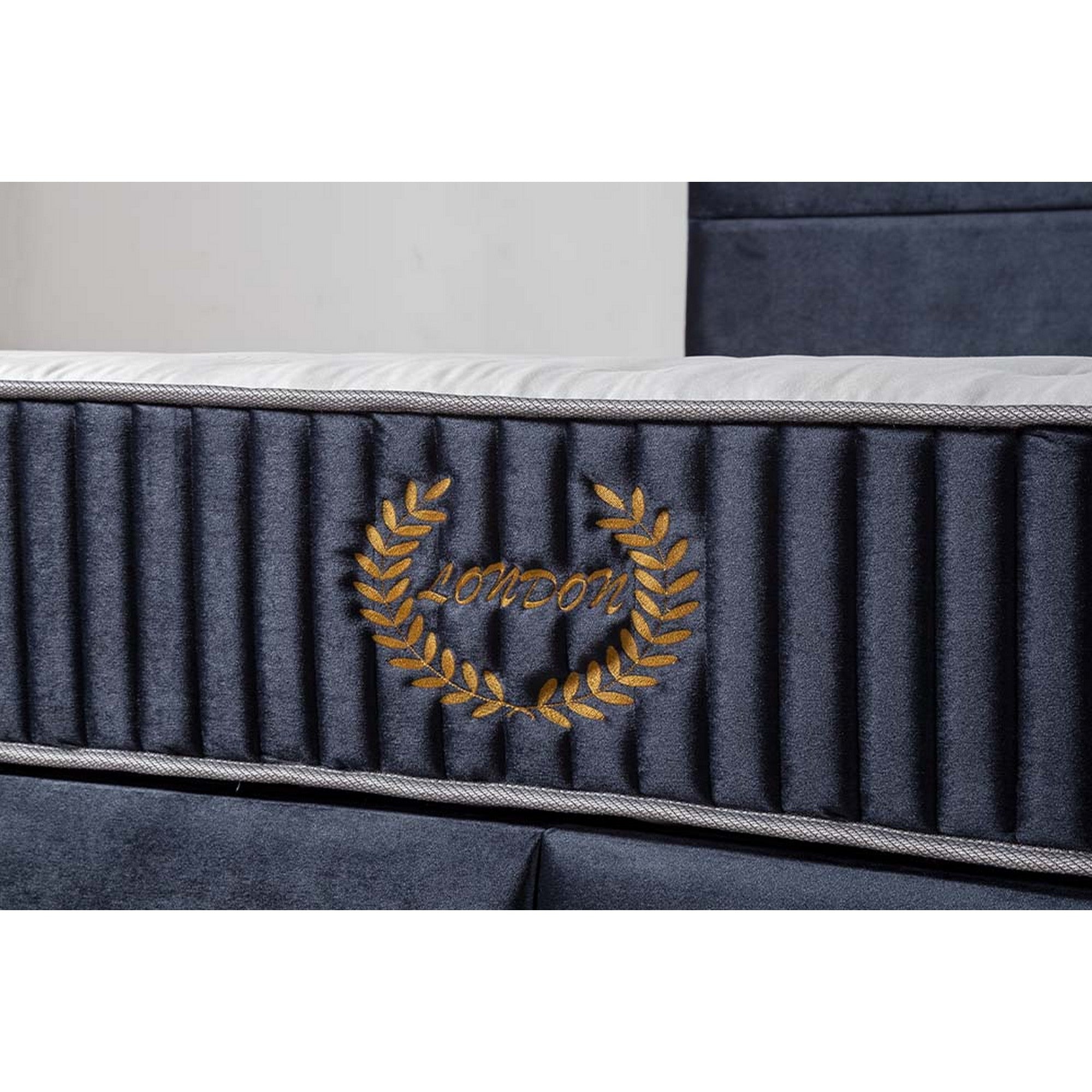PAT LONDON 160X200, STOFA CATIFELATA ALBASTRU INCHIS - LUNA 19, CU SOMIERA SI SPATIU DEPOZITARE