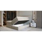 Pat MADDEN 140 boxspring, personalizabil, 2 lazi depozitare, cu saltele si topper 5 cm