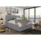 PAT BOXSPRING MINOLA 160, STOFA CATIFELATA GRI - MONOLITH 84, 217X179X121 CM LXlXH, STRUCTURA DIN DOUA SALTELE POCKET SUPRAPUSE, CU DOUA LAZI DE DEPOZITARE