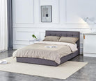 Pat PADVA 140x200, stofa clasica gri, cu somiera si spatiu de depozitare