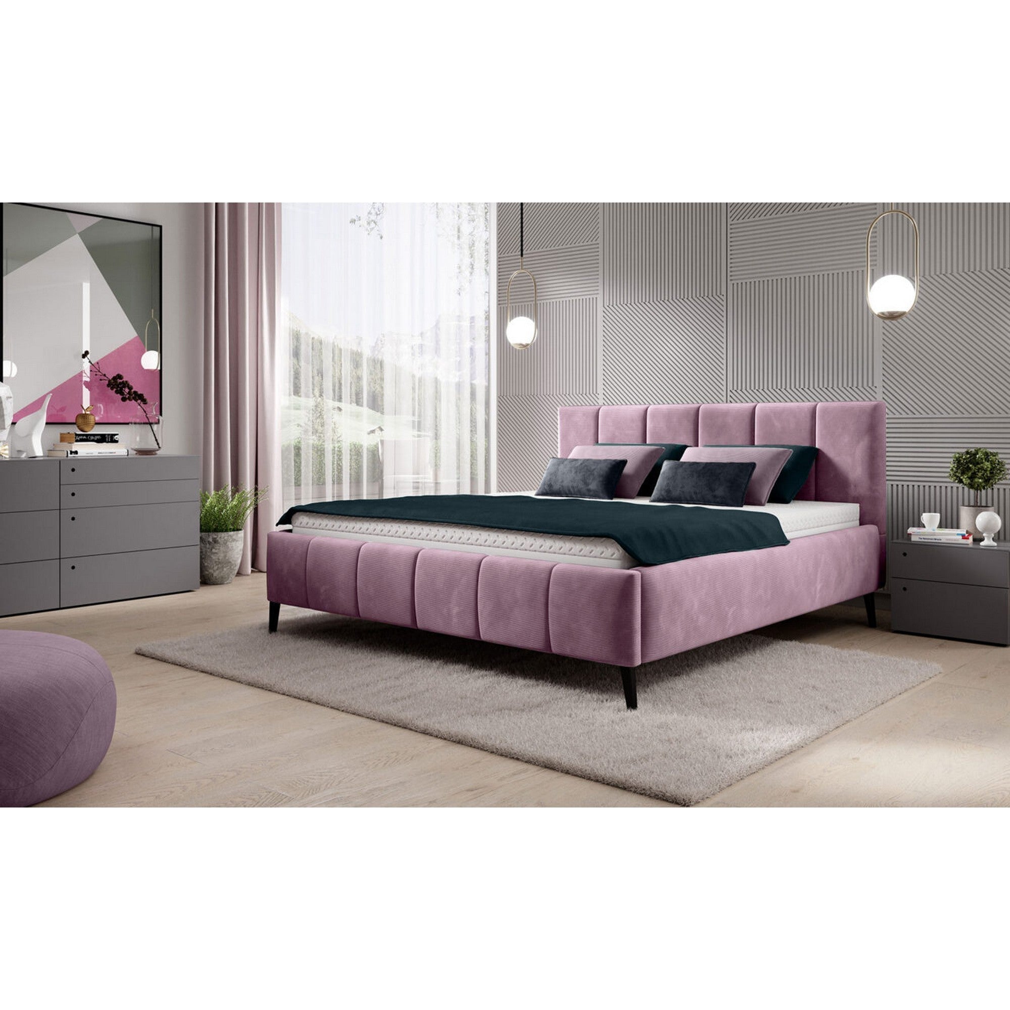 Pat RIVA SR, 160x200 cm, stofa catifelata roz - Riviera 62, somiera de lemn si sistem de reglare