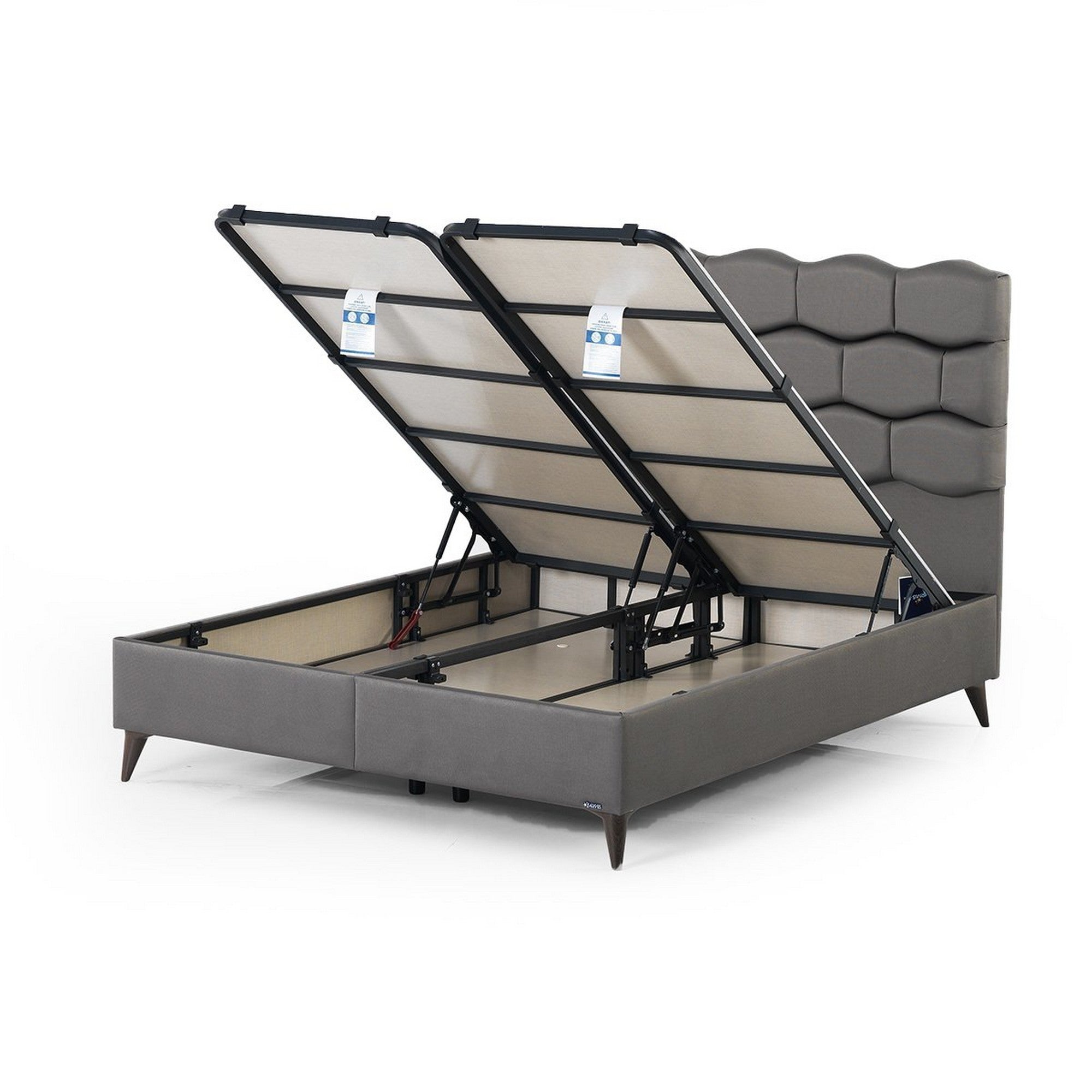 Pat STONE 160x200, stofa clasica maro - Notto C0533, cu somiera si spatiu depozitare