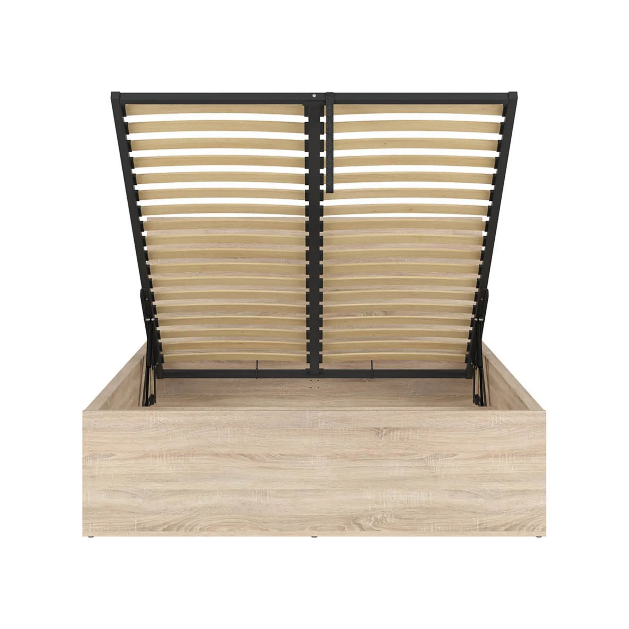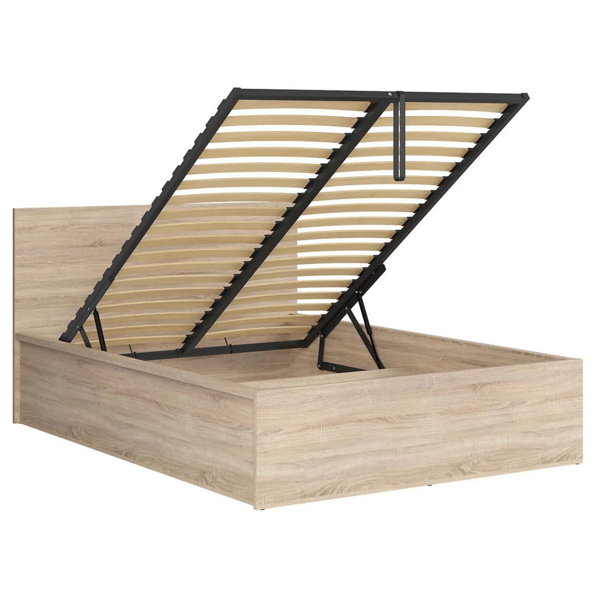 Pat TETRIX 140x200, stejar sonoma, PAL, cu somiera si spatiu depozitare