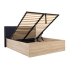 PAT TETRIX 160X200, STEJAR SONOMA/NEGRU, PAL/STOFA, CU SOMIERA SI SPATIU DEPOZITARE