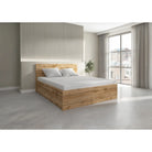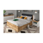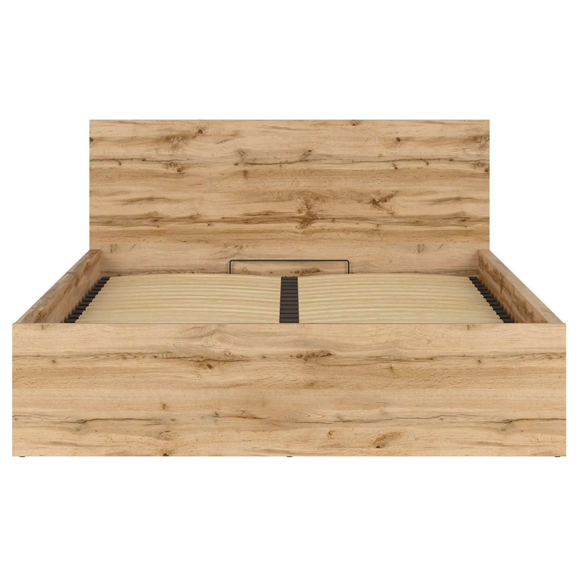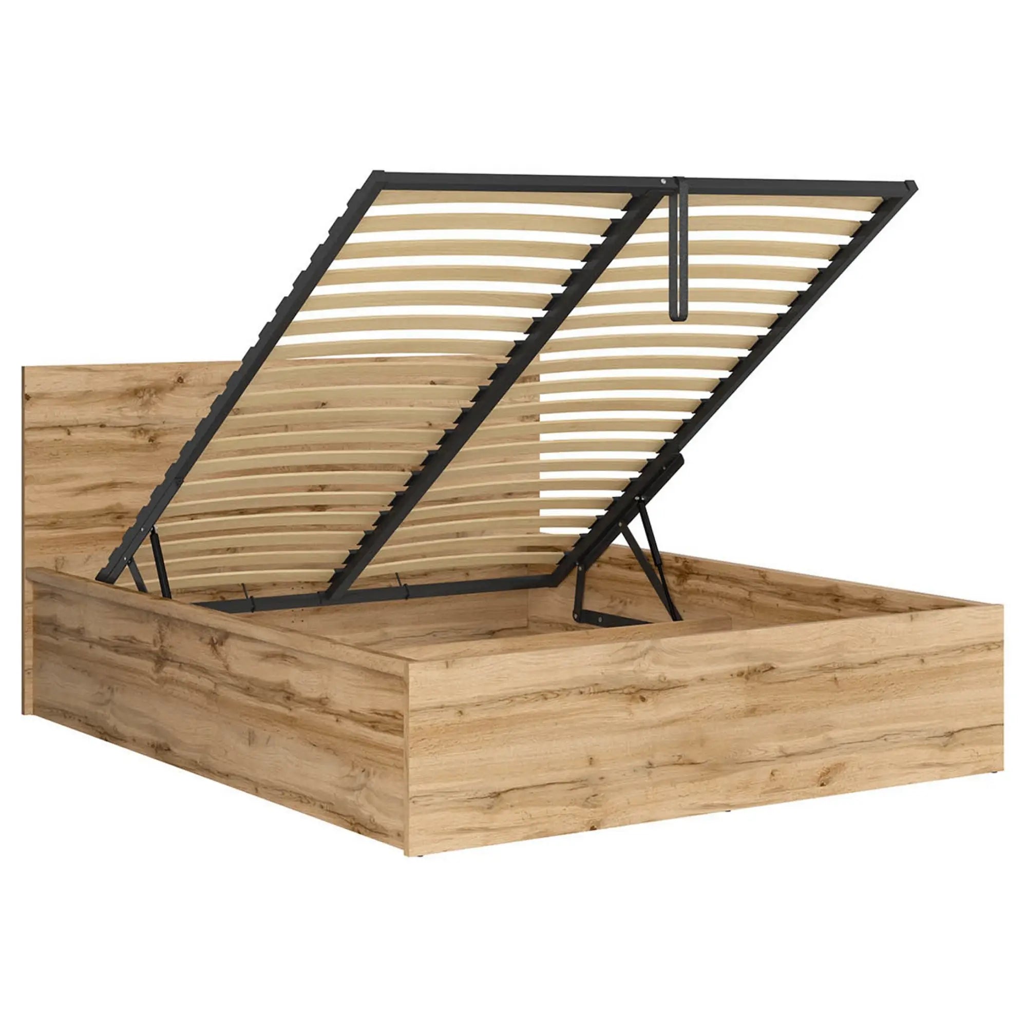 PAT TETRIX 160X200, STEJAR WOTAN, PAL, CU SOMIERA SI SPATIU DEPOZITARE