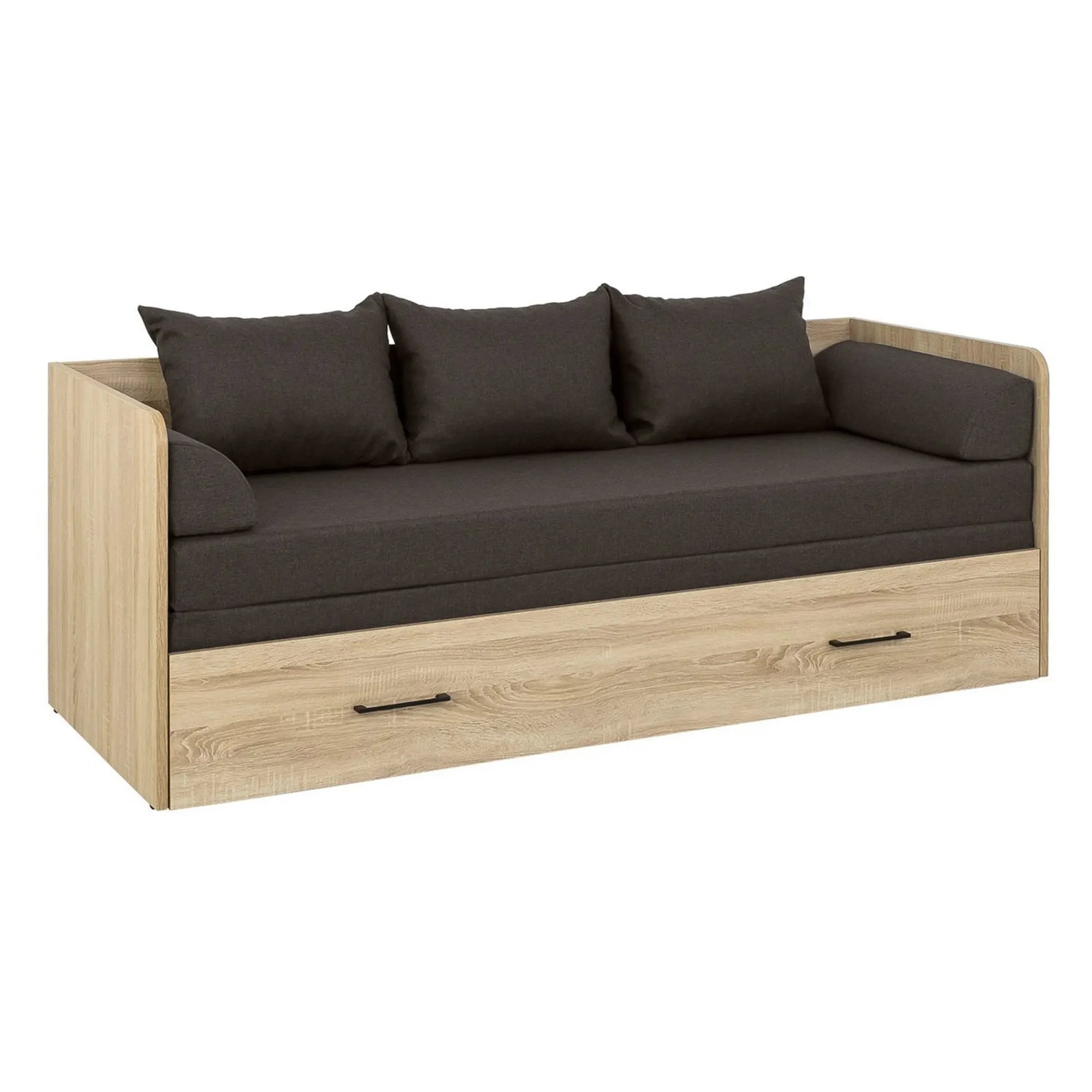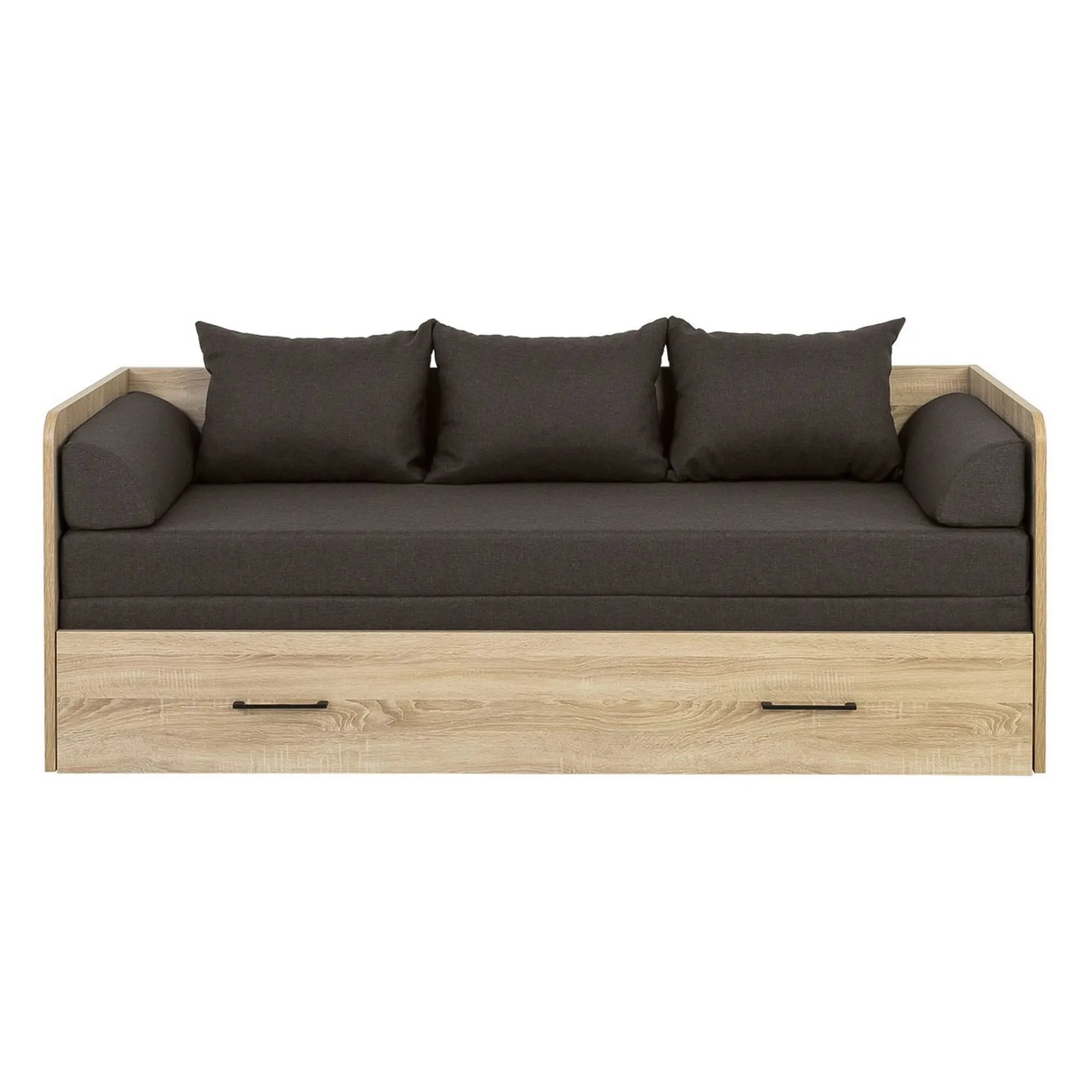 Pat TETRIX 80/160x200, stejar sonoma/maro, PAL/stofa, cu saltea extensibila si spatiu depozitare