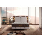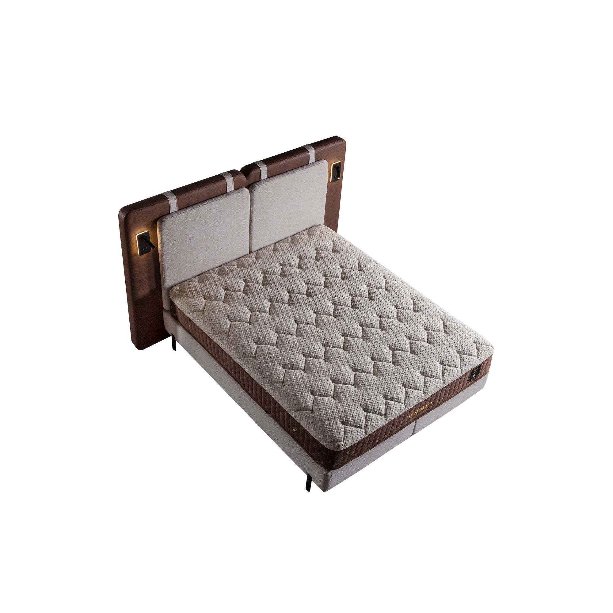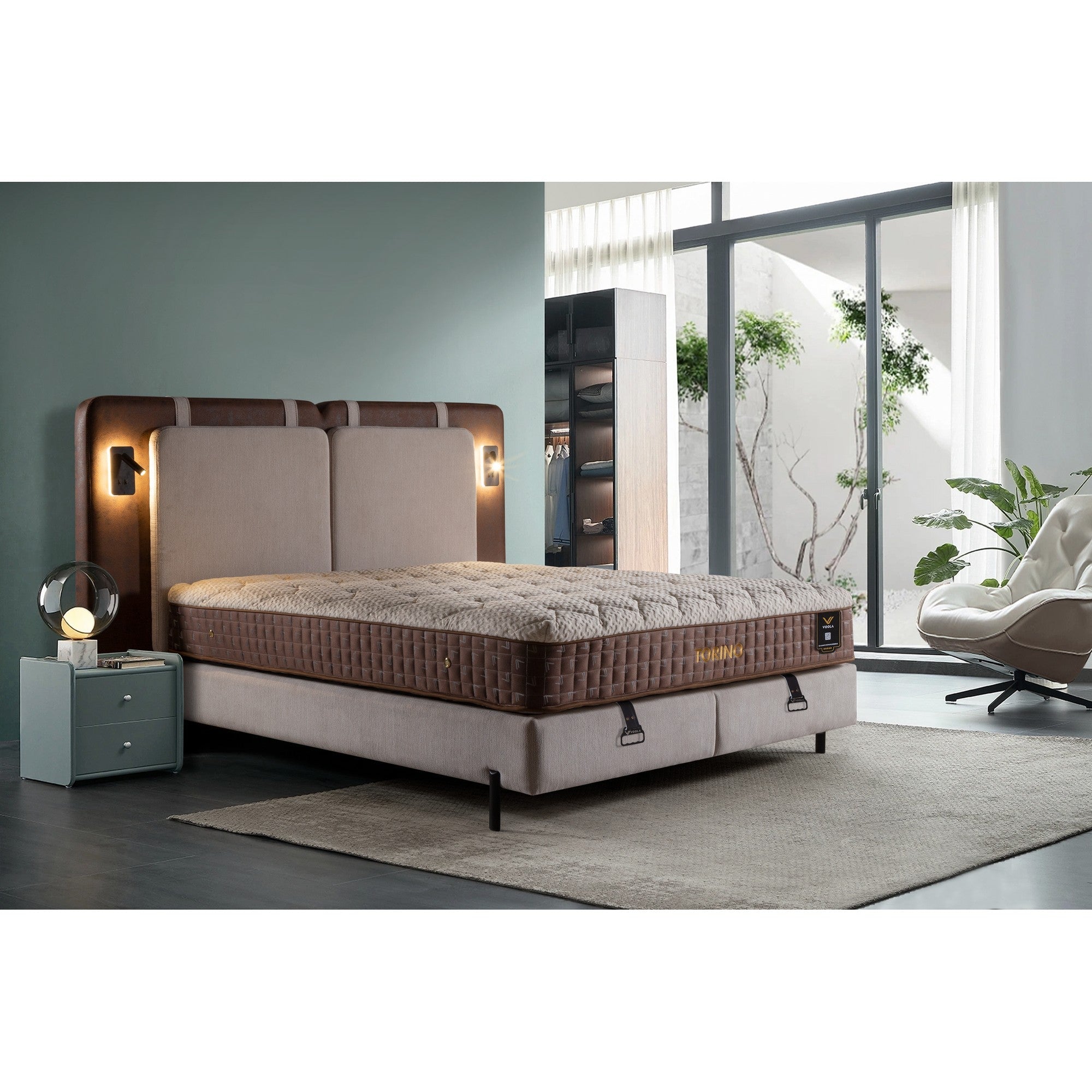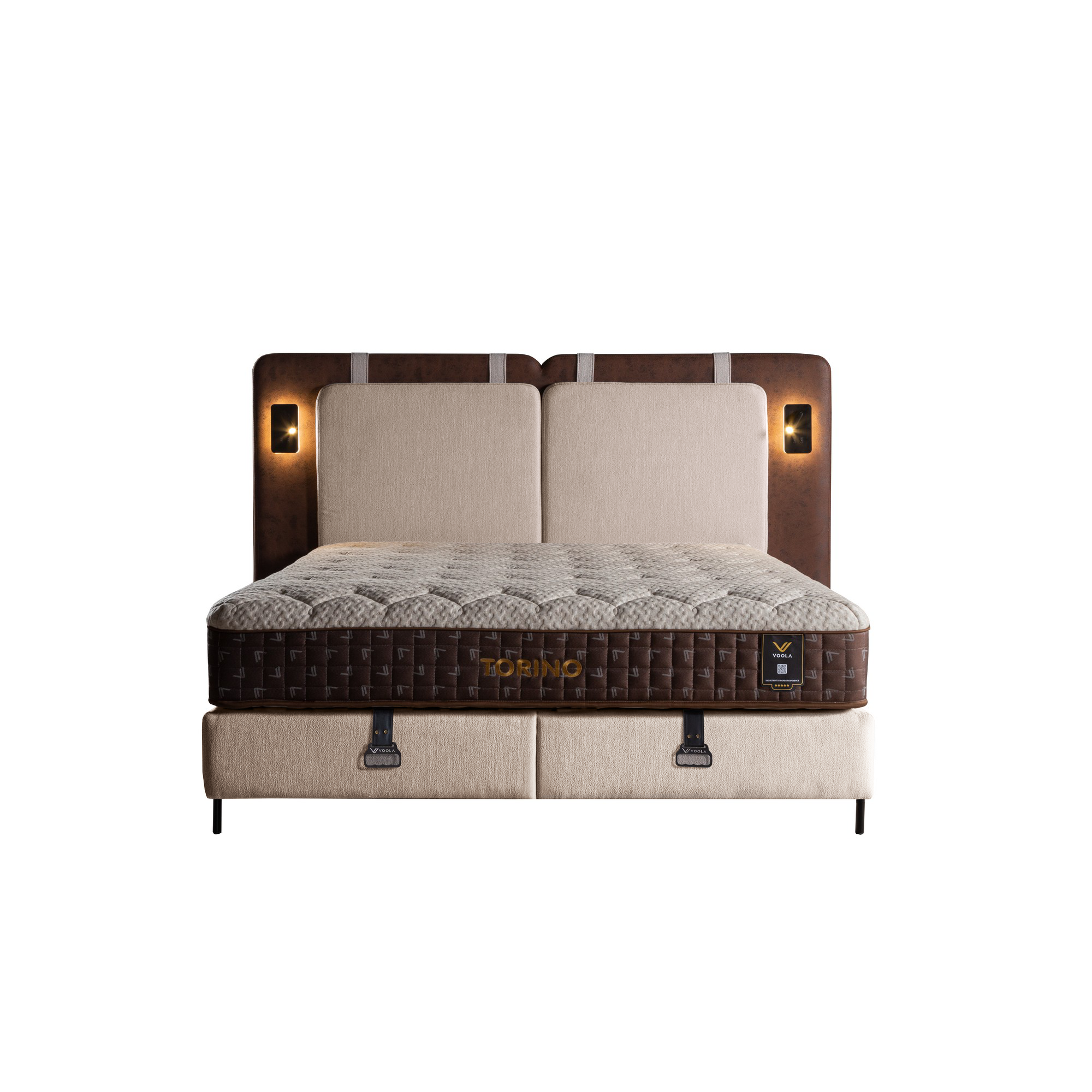 Pat TORINO 160x200, stofa clasica bej - Boss 13/maro, cu somiera si spatiu depozitare