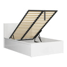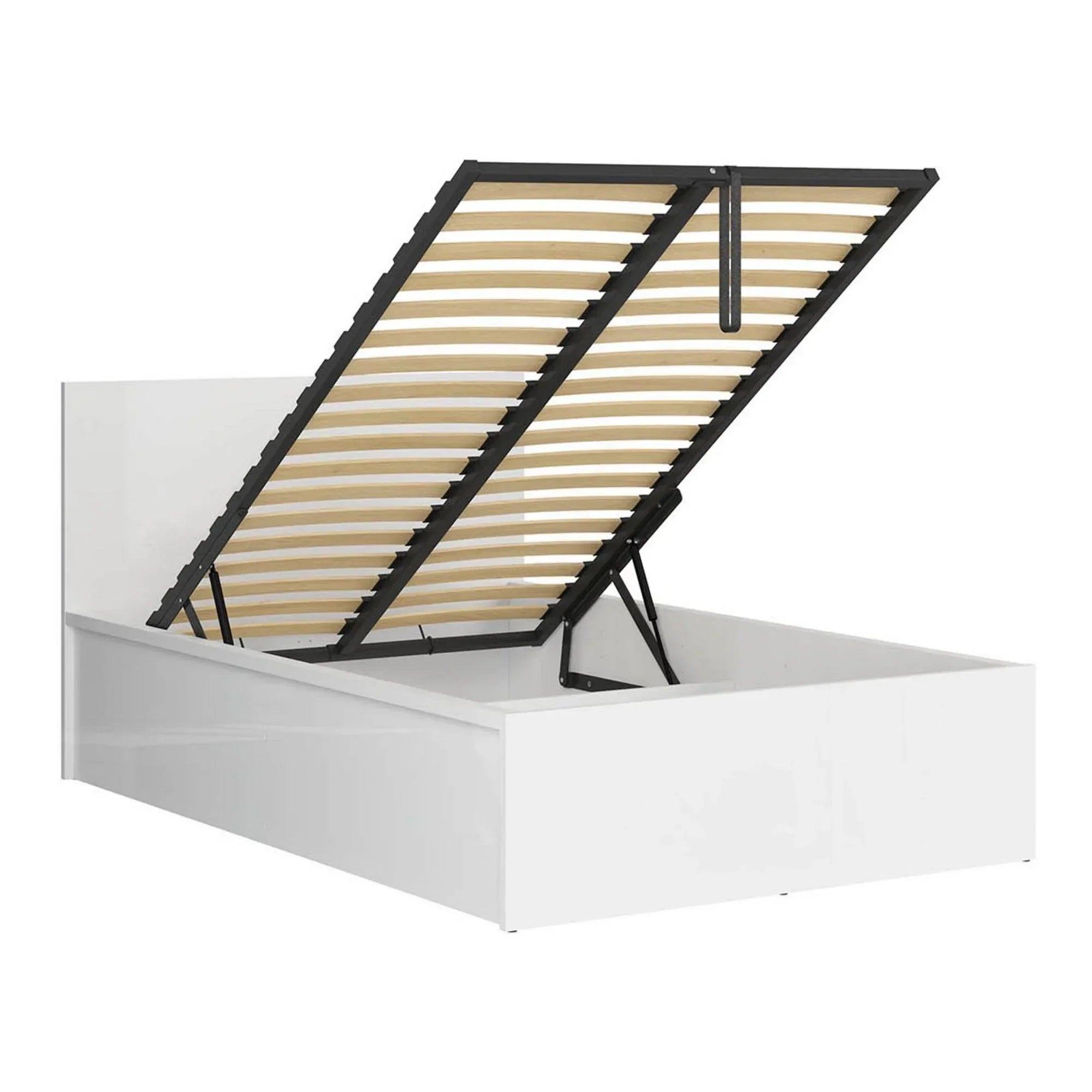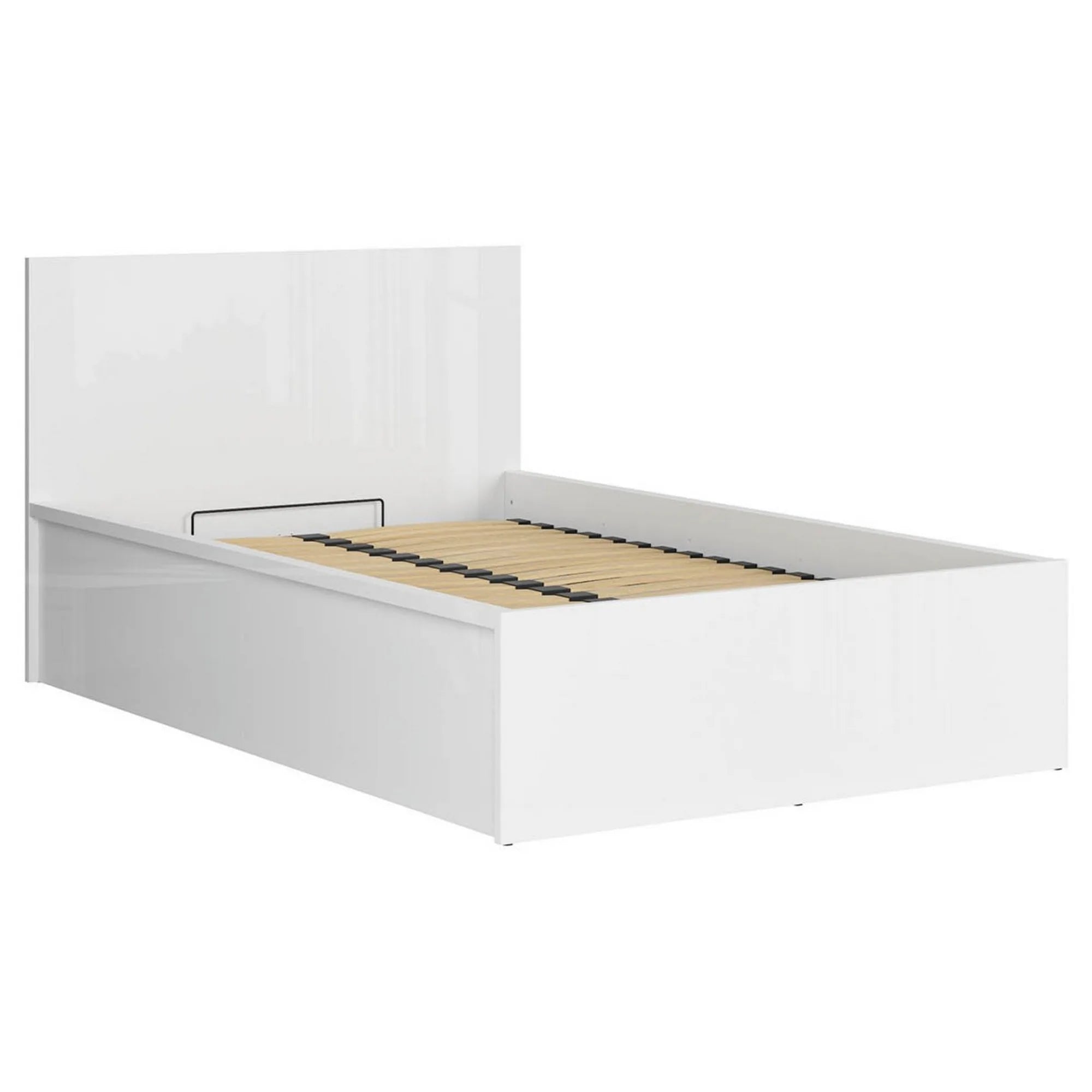 Pat TRETIX 120x200, alb lucios, PAL laminat, cu somiera si lada depozitare