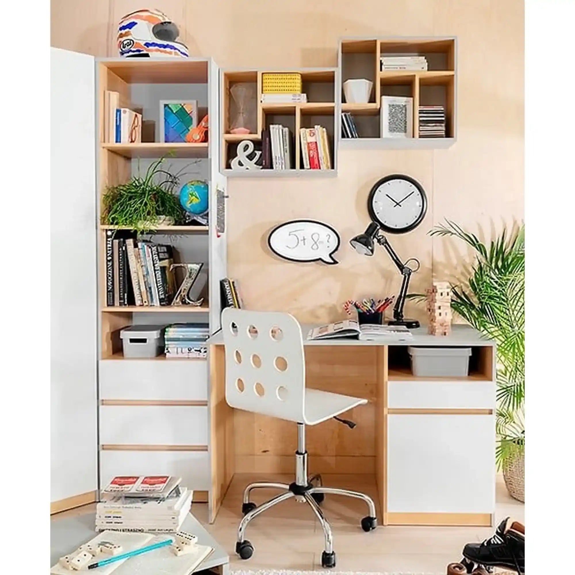 Raft NANDU, stejar/gri deschis, PAL, 56x22x56 cm