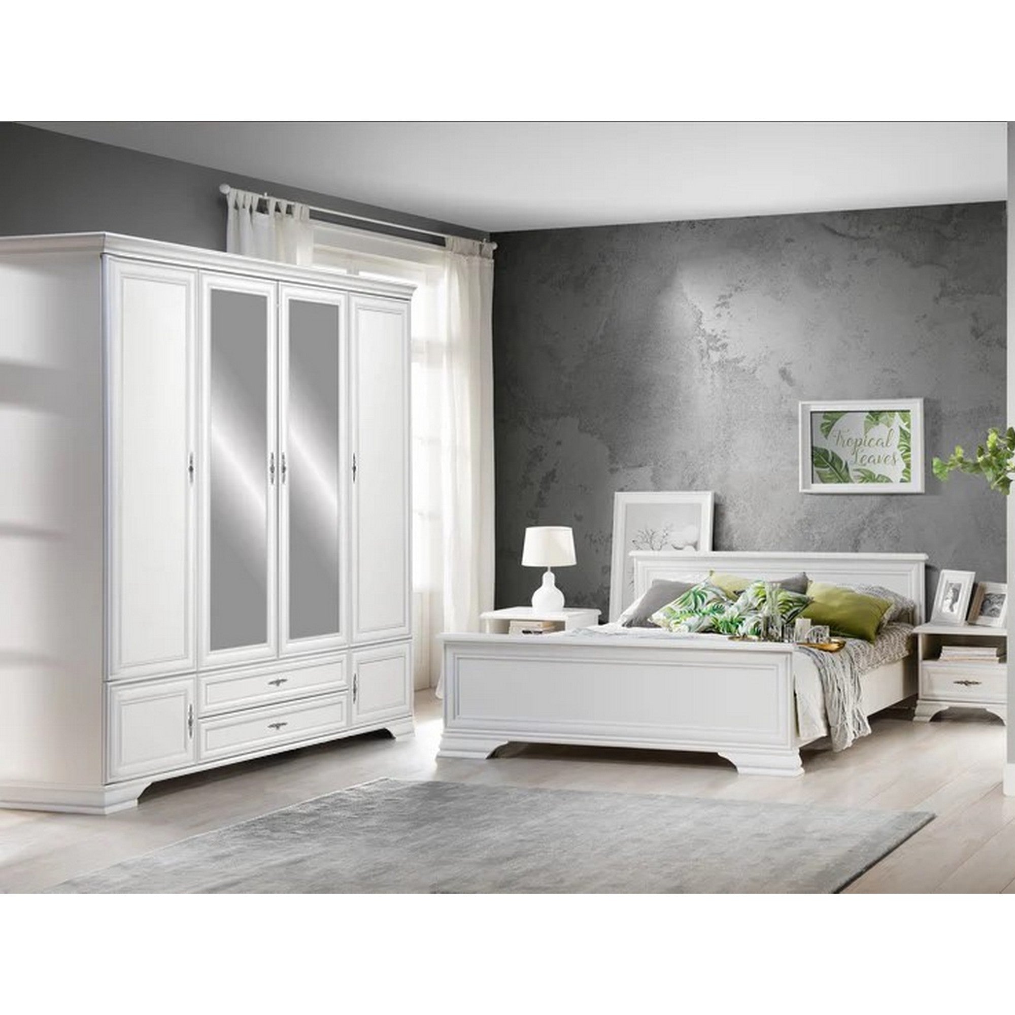 SET MOBILIER PENTRU DORMITOR IDENTO 3, ALB, PAL/MDF, FORMAT DIN: PAT 160x200, DULAP SI 2 NOPTIERE