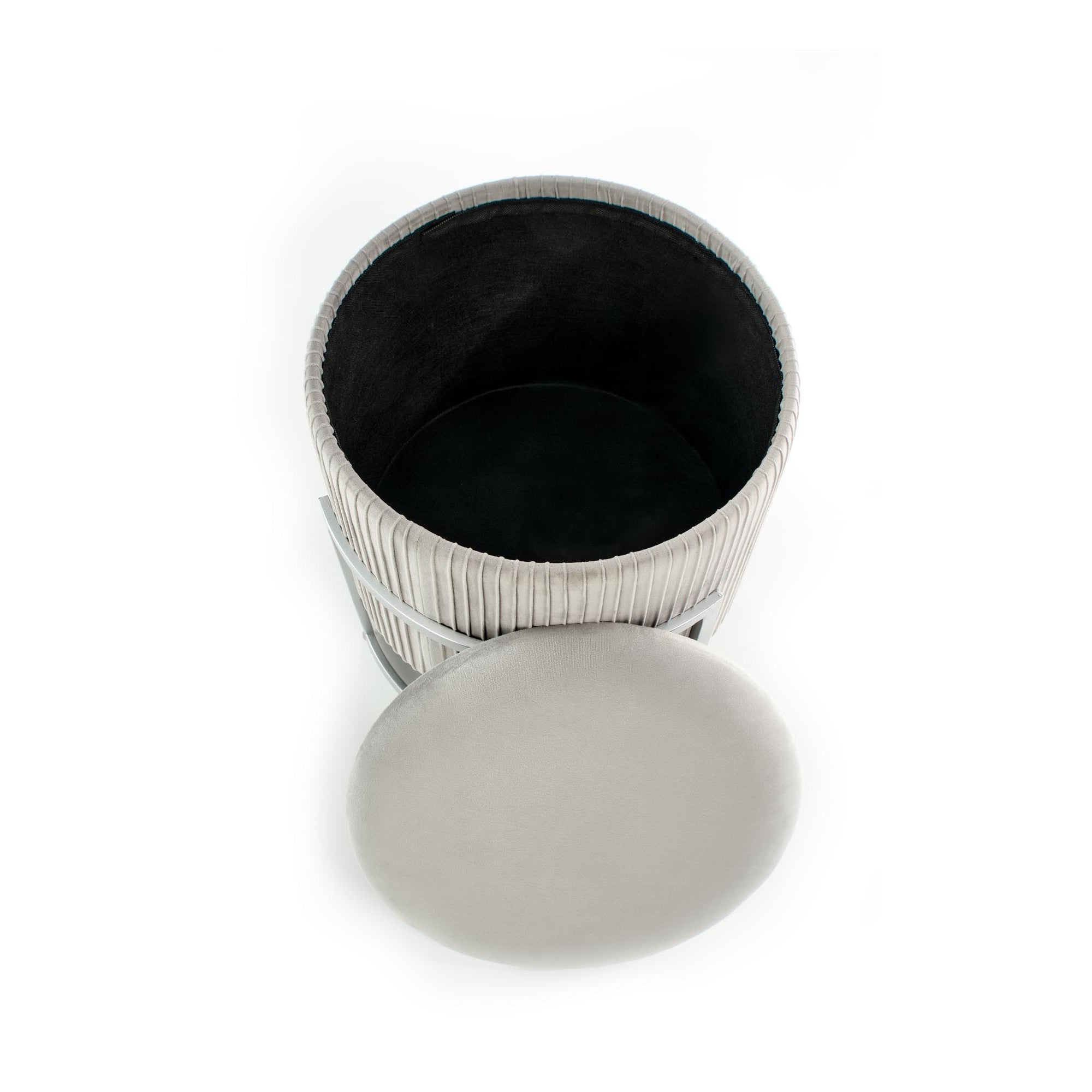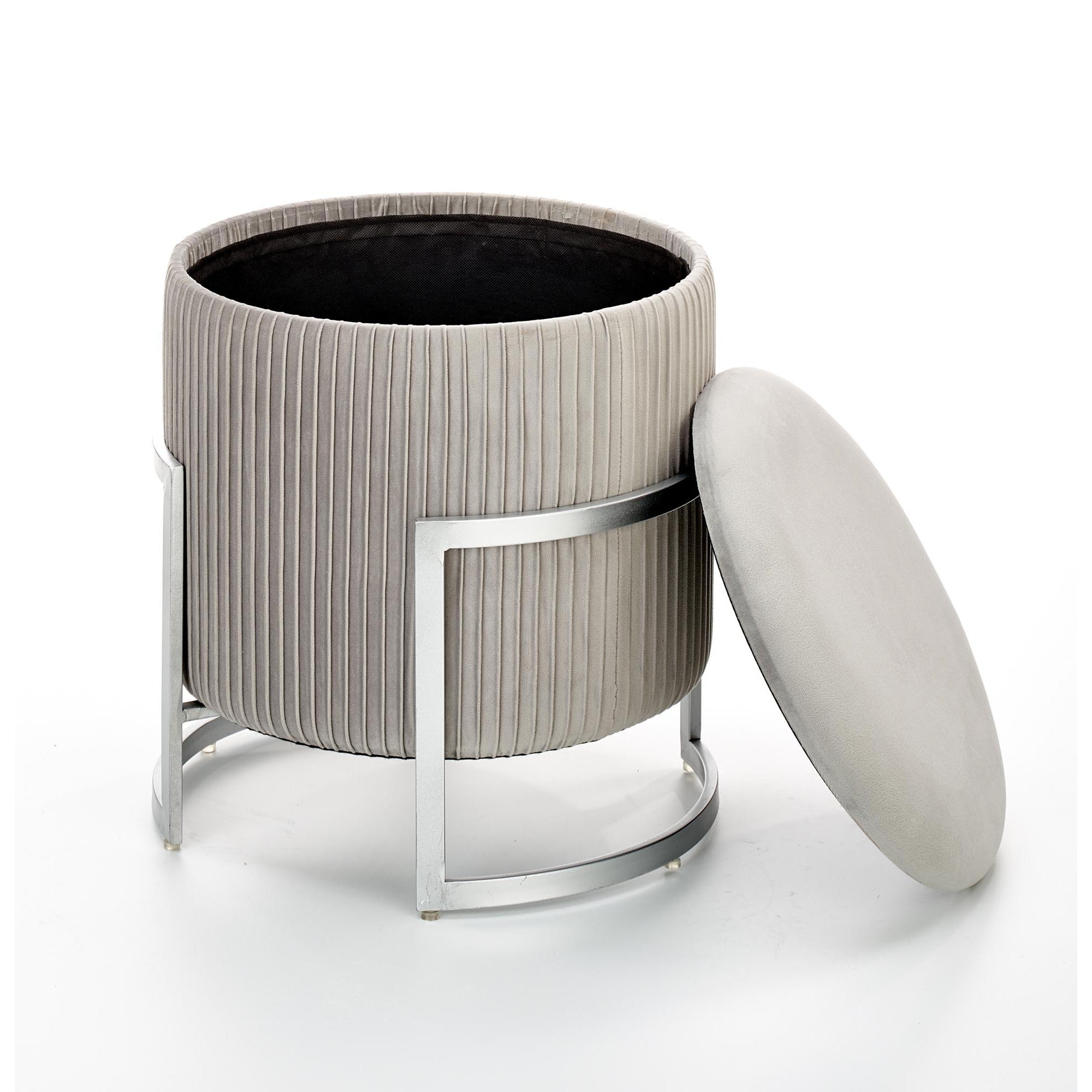 Taburet CRICKET, otel / stofa catifelata gri cenusie, 40x46 cm
