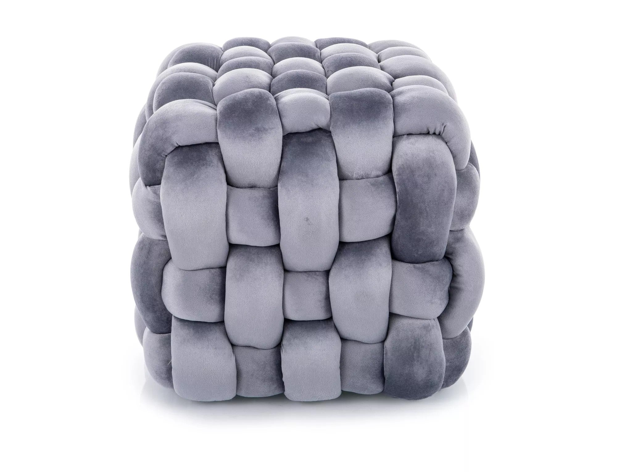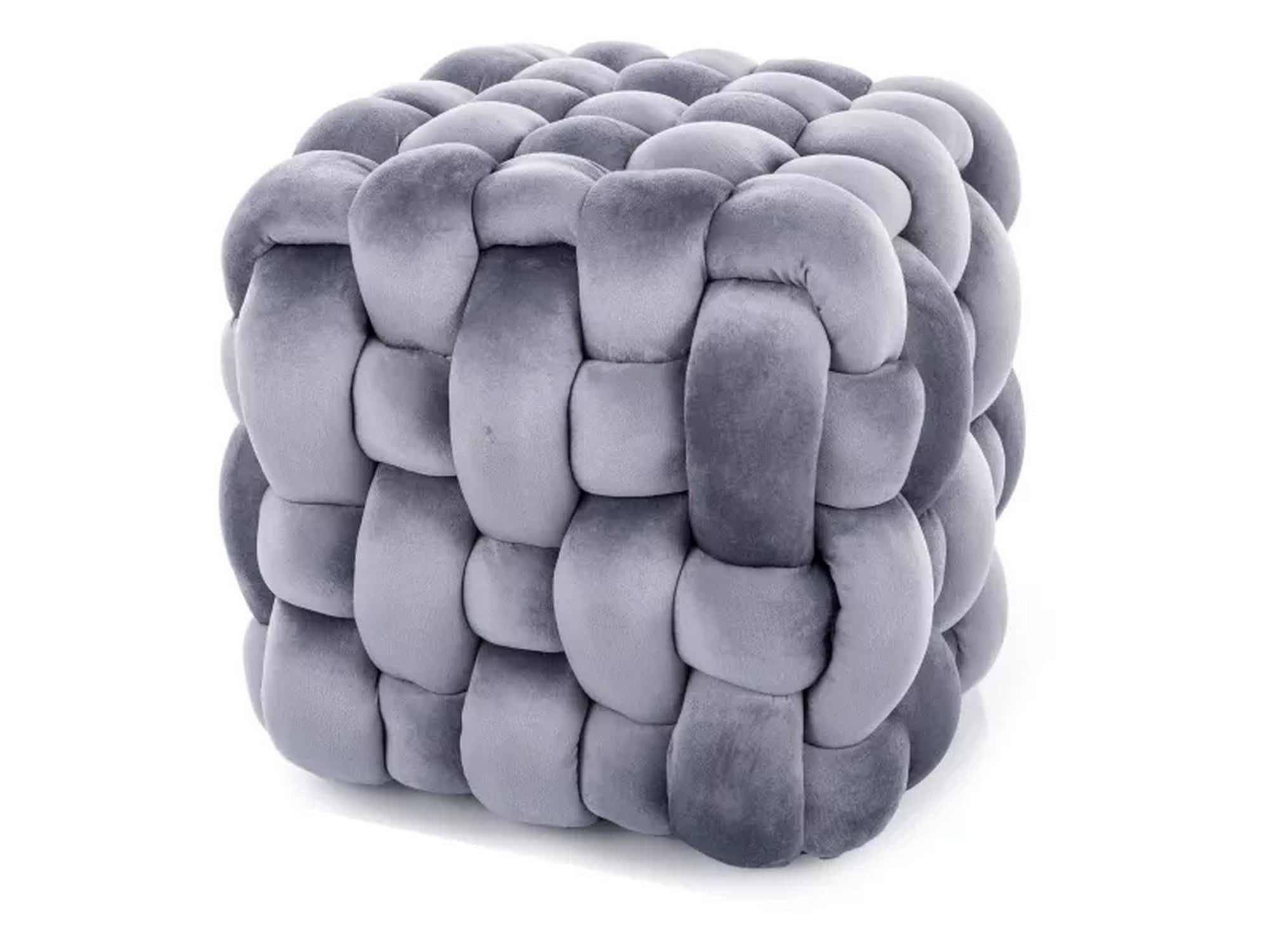 Taburet FARIS, gri, stofa catifelata, 45x45x41 cm