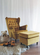 Taburet RON, stofa catifelata galben - Bluvel 68, 60x40x43 cm