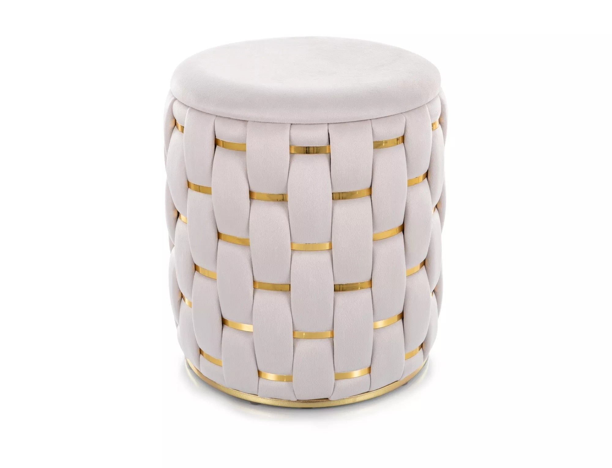 Taburet TIARA, bej deschis/auriu, stofa catifelata, 37x37x42 cm