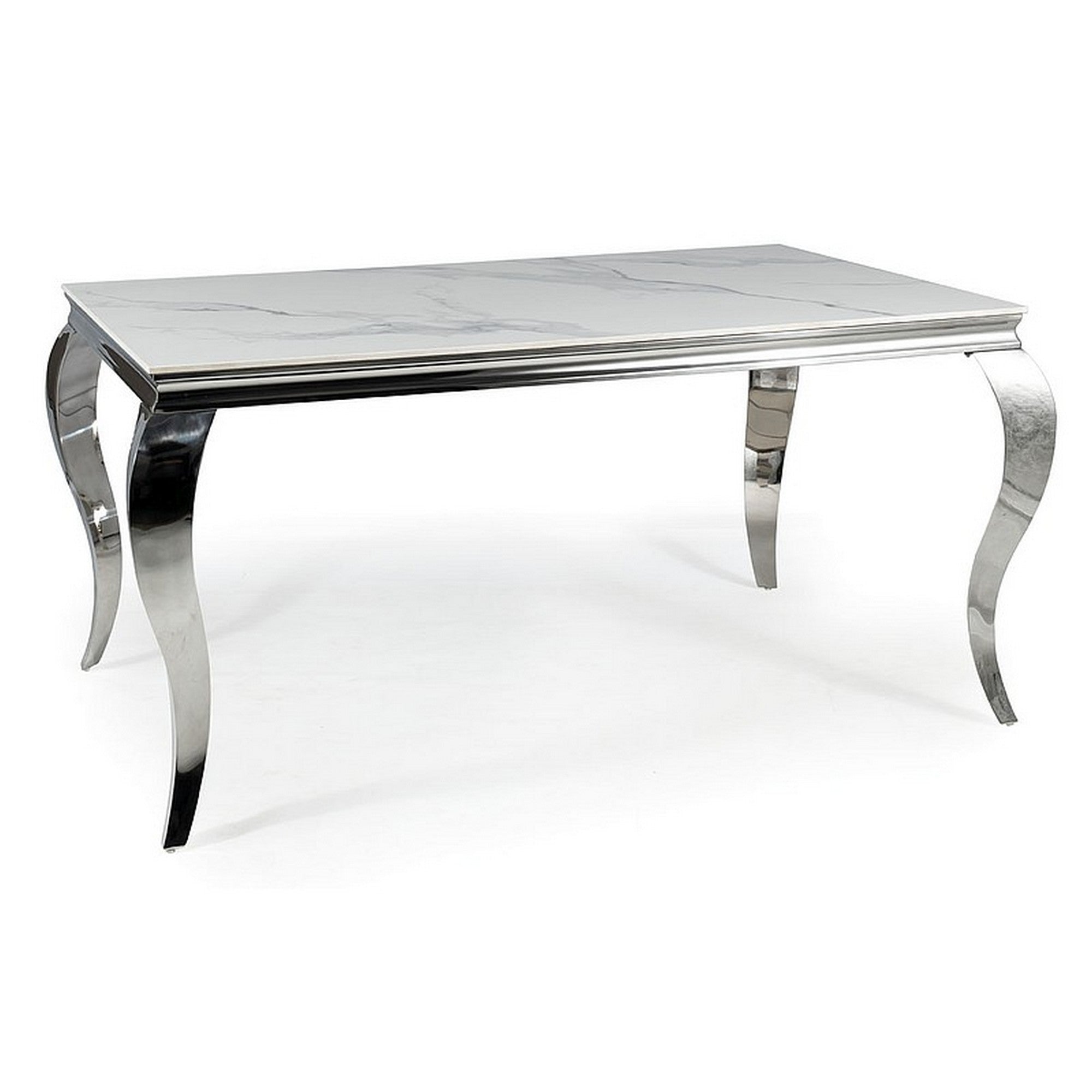 Masa PRINCE, ceramica/otel, alb/crom, 180X90X75 cm