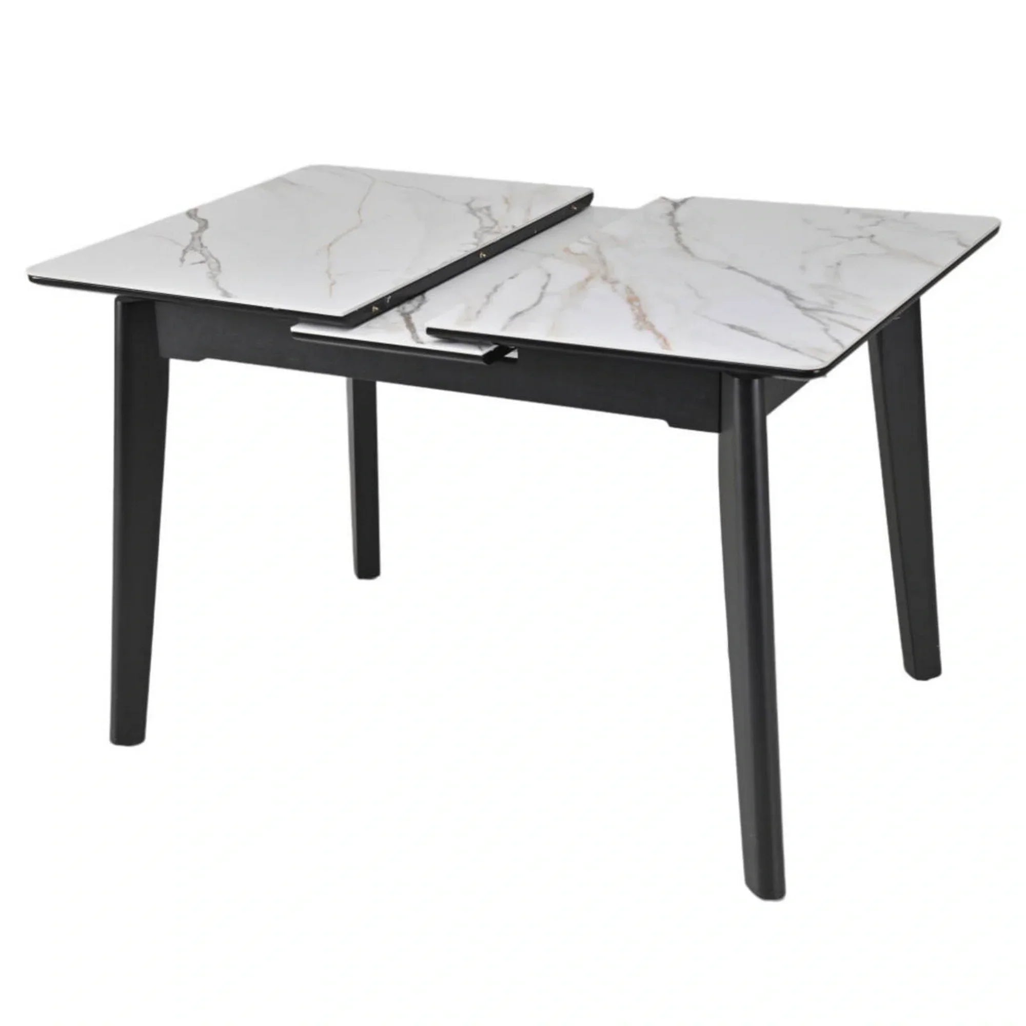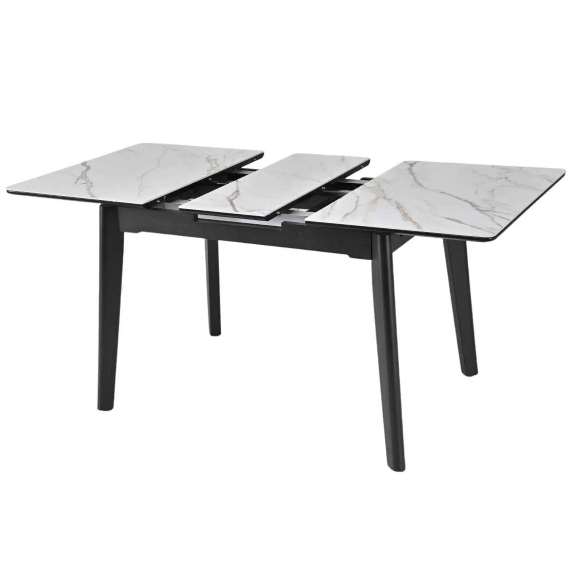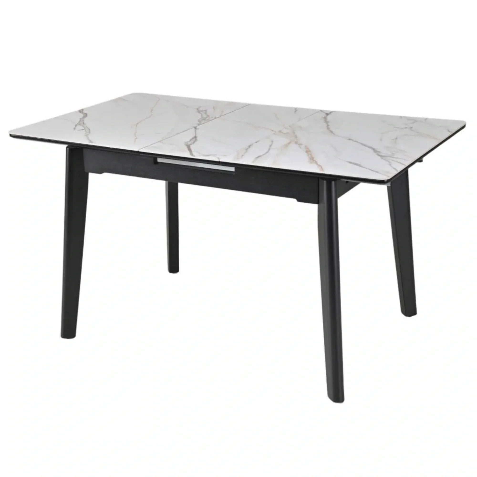 Masa extensibila OSTEN, alb cu efect de marmura/negru, 110/140x80x76 cm
