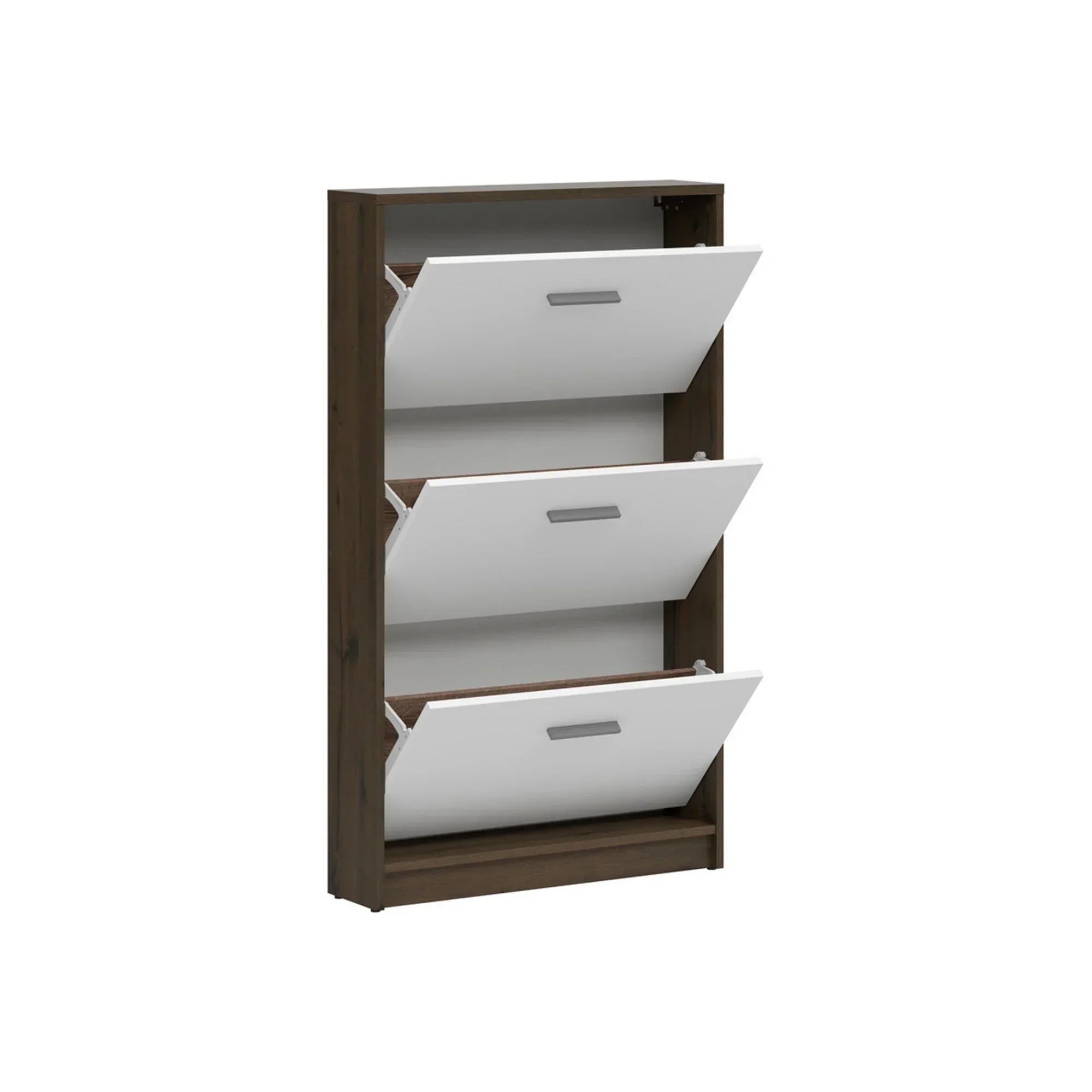 Pantofar NEPO PLUS, stejar inchis/alb, PAL laminat, 70x18x121 cm