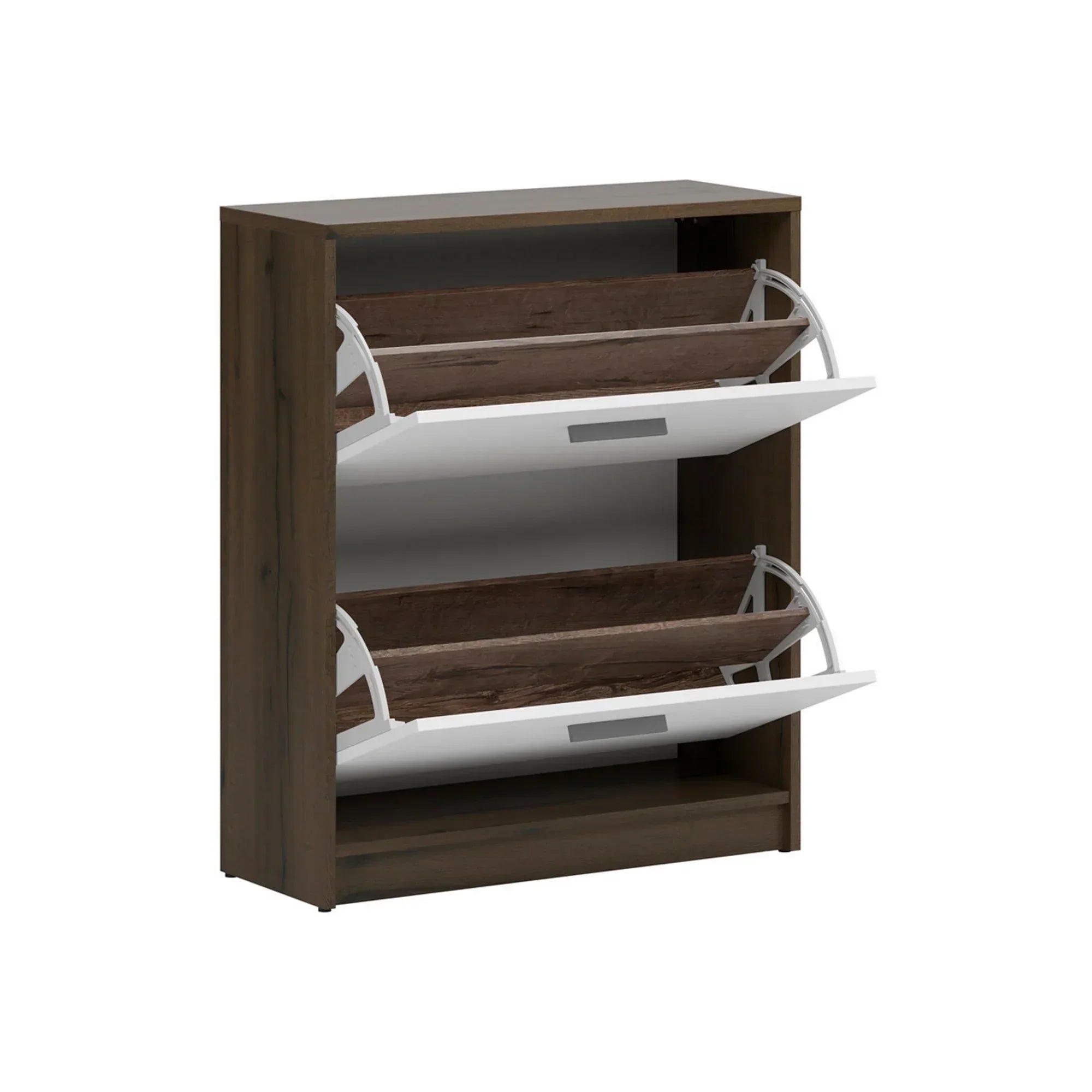 Pantofar NEPO PLUS, stejar inchis/alb, PAL laminat, 70x28x84 cm