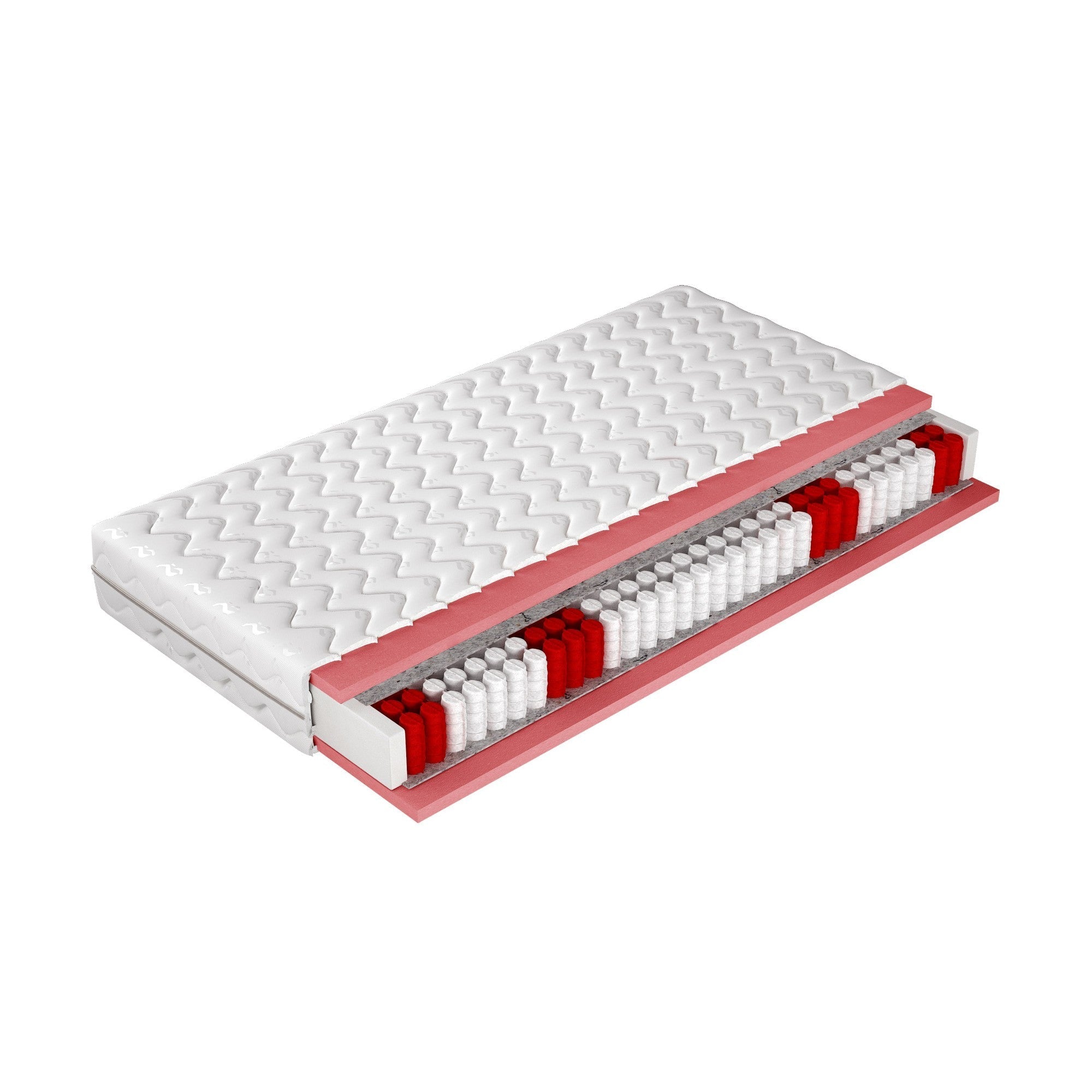 Salteaua este formata din arcuri pentru 7 zone. Ofera garantia confortului si datorita arcurilor in forma de cilindru, inconjurate suplimentar de un buzunar special garanteaza si o functionare silentioasa. Aceasta saltea este mult mai flexibila si se adapteaza foarte bine formei si greutatii corpului.