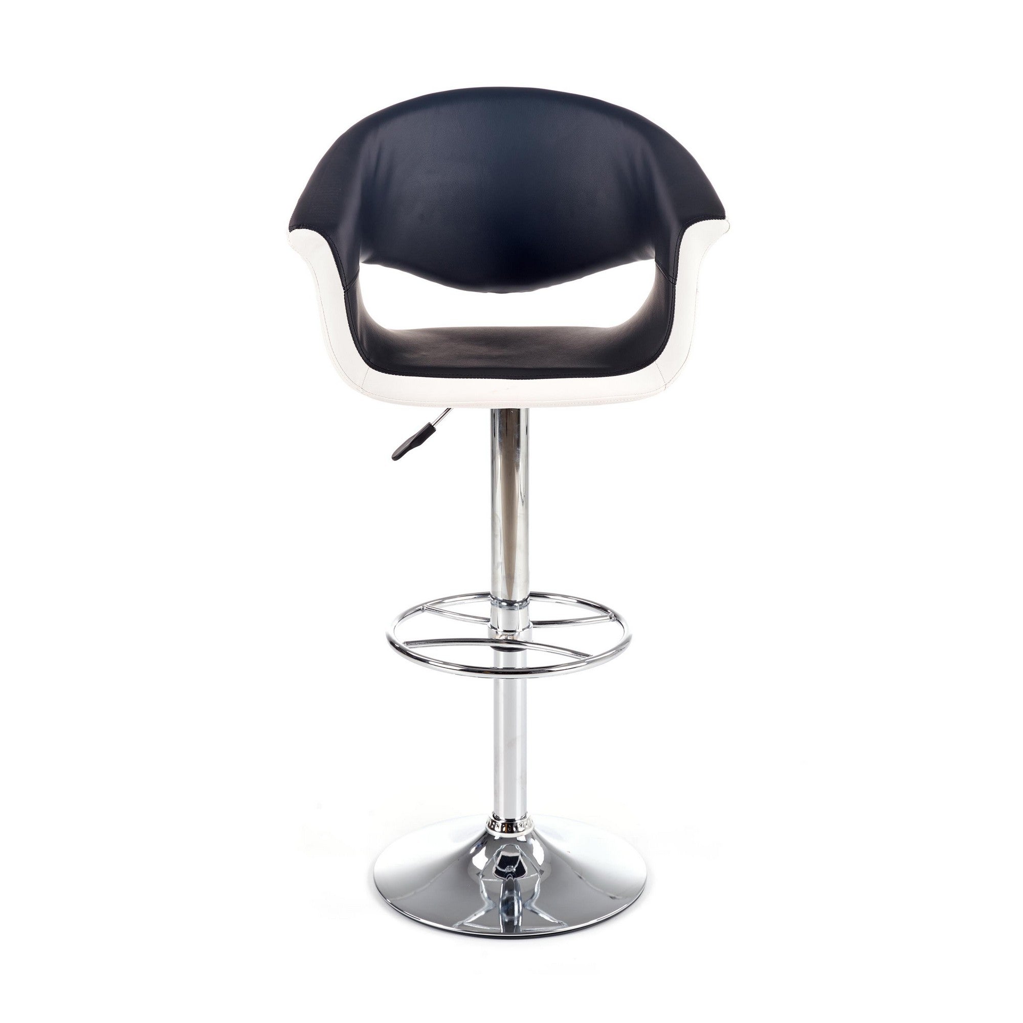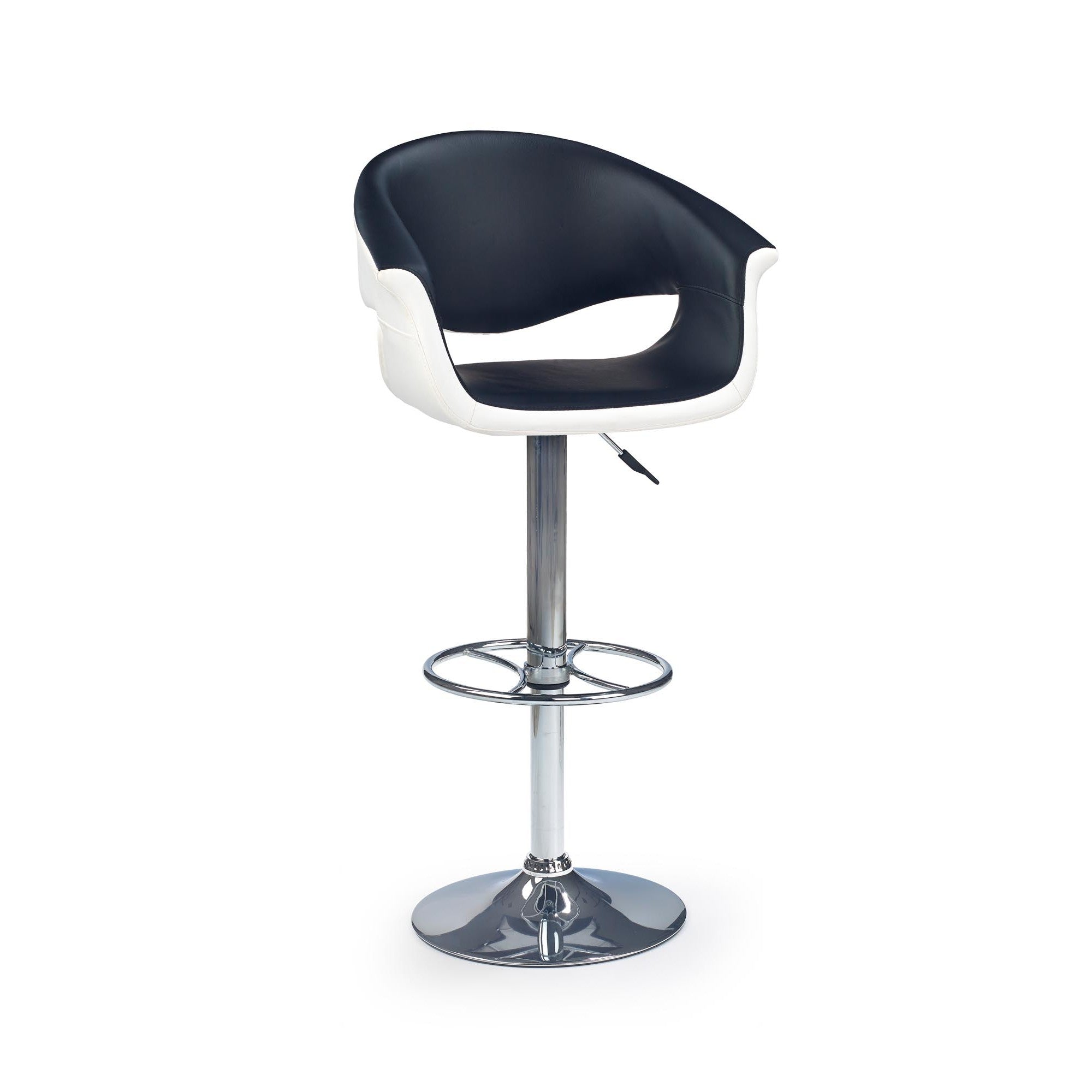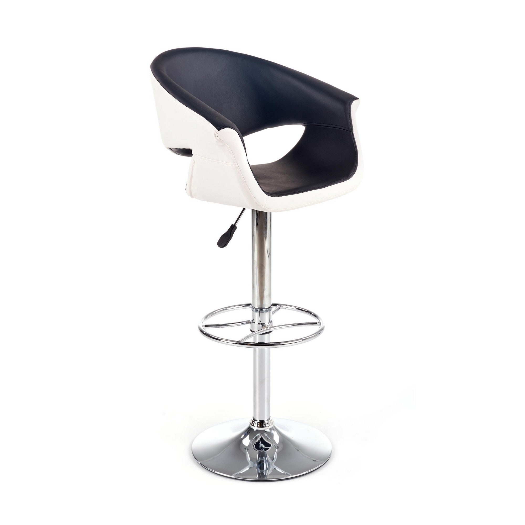 - picior realizat din otel cromat si sezut din piele ecologica neagra si alba