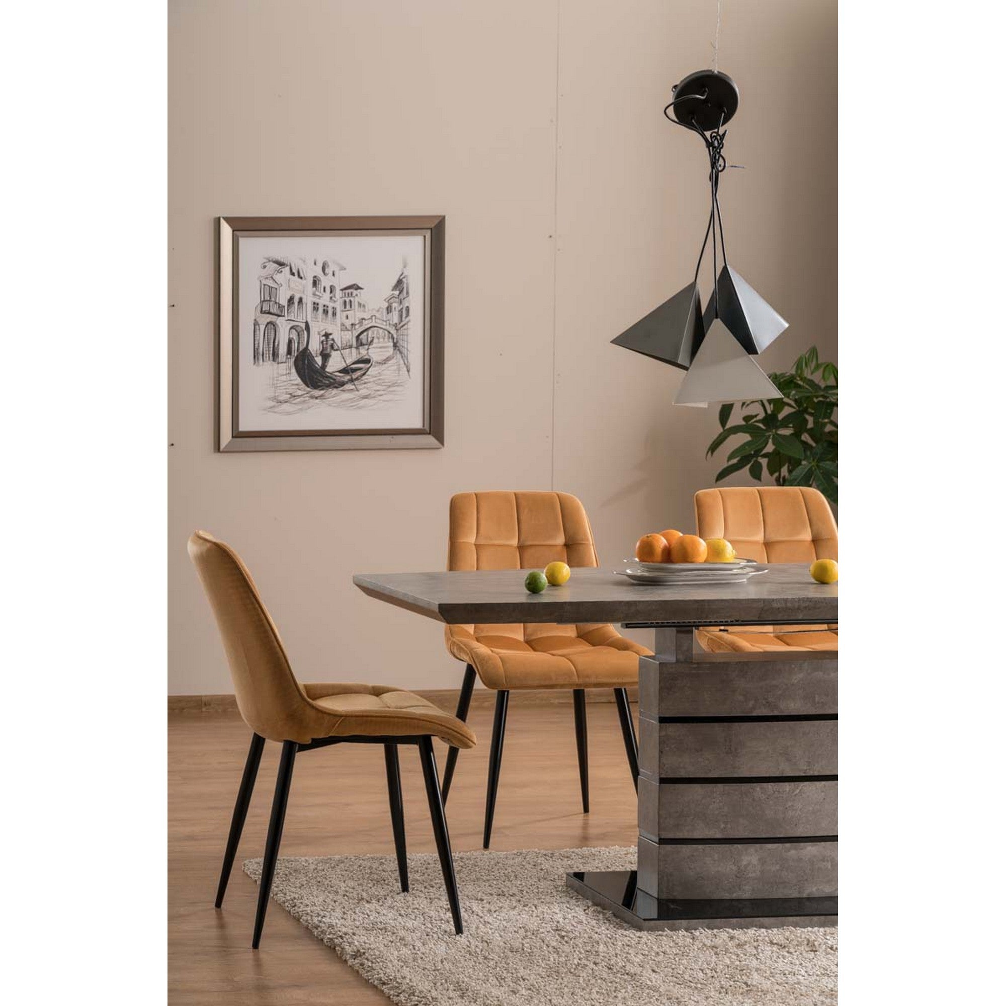 Scaun CHIC, galben mustar/negru, stofa catifelata/metal, 50x43x88 cm