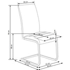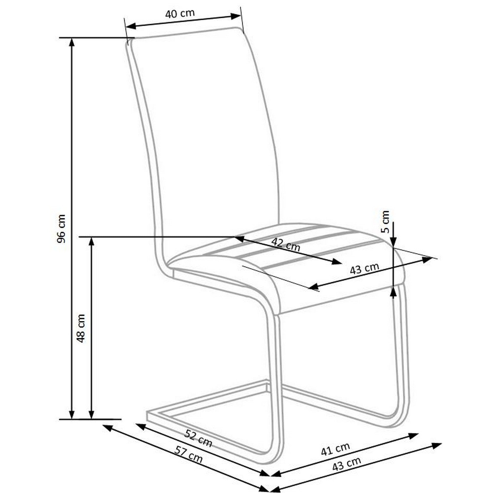 Scaun modern, elegant si confortabil, realizat pe cadru metalic, cu sezutul si spatarul din spuma poliuretanica moale tapitata cu piele ecologica cusuta in forme rectangulare ce aduc un plus de stil si confort.
