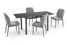 SET MASA EXTENSIBILA CU 4 SCAUNE JASPER, GRI/NEGRU, STOFA CLASICA/STICLA/METAL