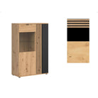 Vitrina VABRES, stejar artisan/negru mat, PAL laminat/sticla, 91x40x138 cm