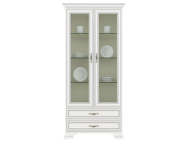 VITRINA CU DOUA USI Tiffany (Tiffy),ALB VINTAGE, PAL SI MDF, 99x39,5x212 CM