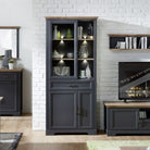 VITRINA JASMIN, GRI GRAFIT/STEJAR ARTISAN, PAL/STICLA, CU ILUMINARE LED, 93X42X204 CM